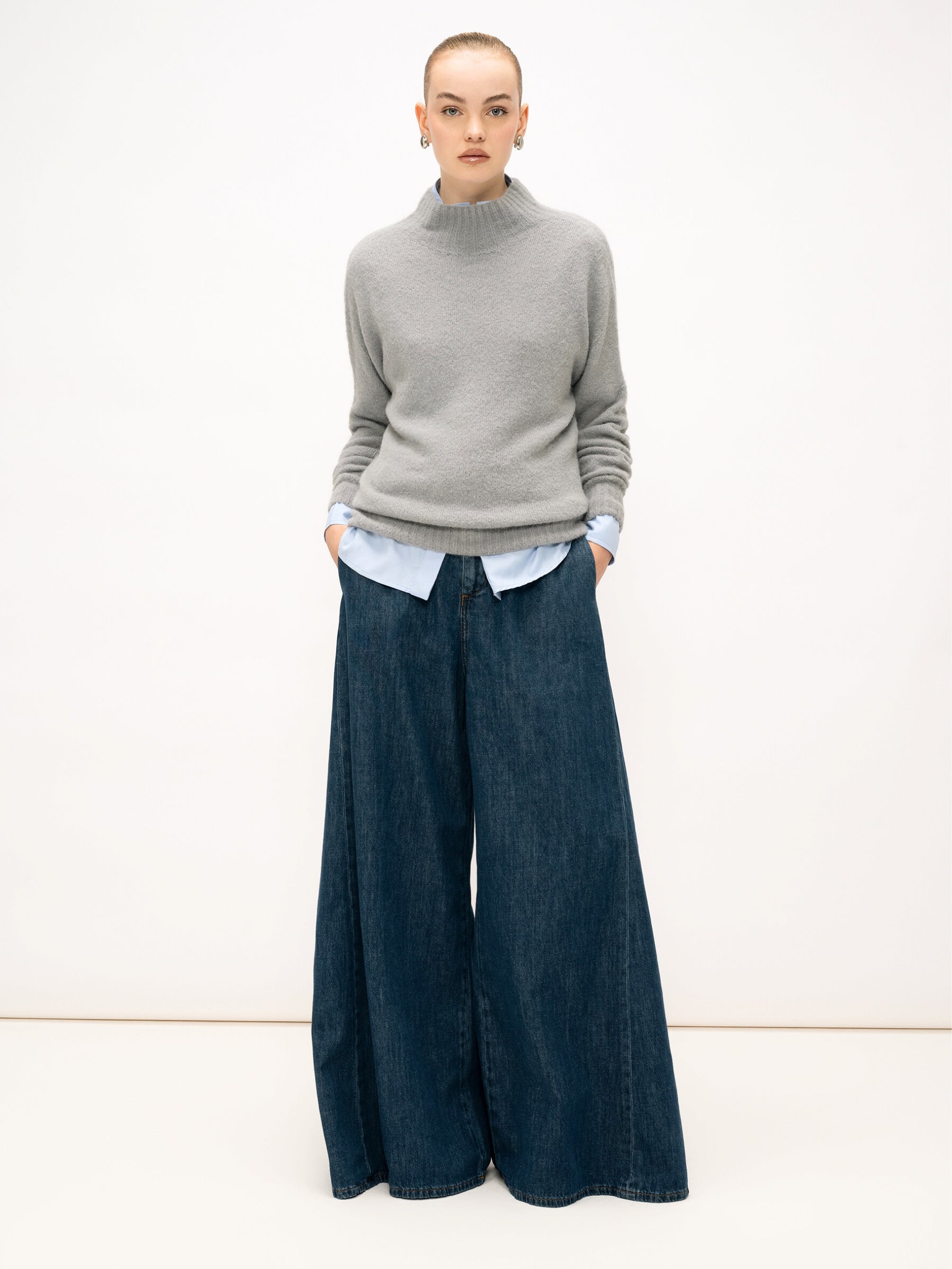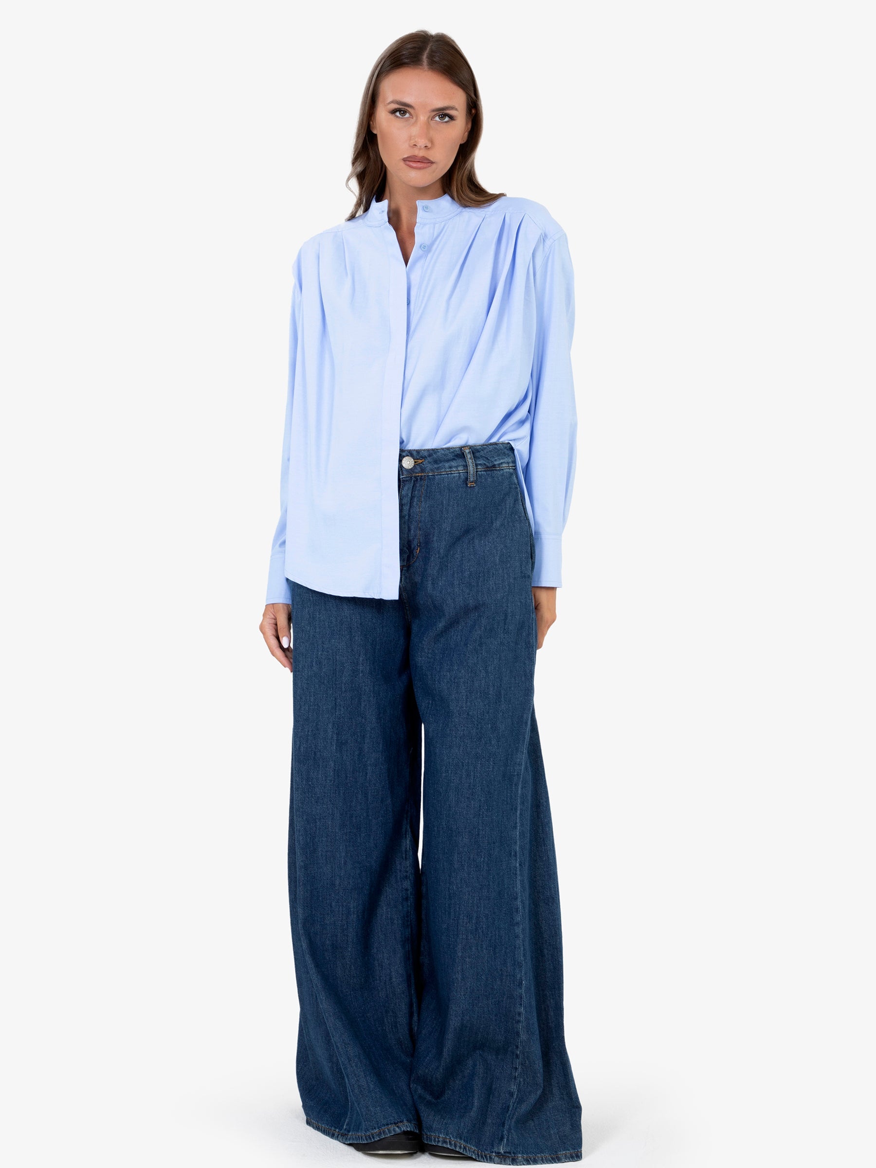 Abbraccia un'eleganza senza tempo con questi pantaloni ampi, un capo essenziale per un guardaroba versatile e sofisticato. Realizzati in puro cotone di alta qualità, offrono un comfort eccezionale e una vestibilità fluida che esalta la silhouette.