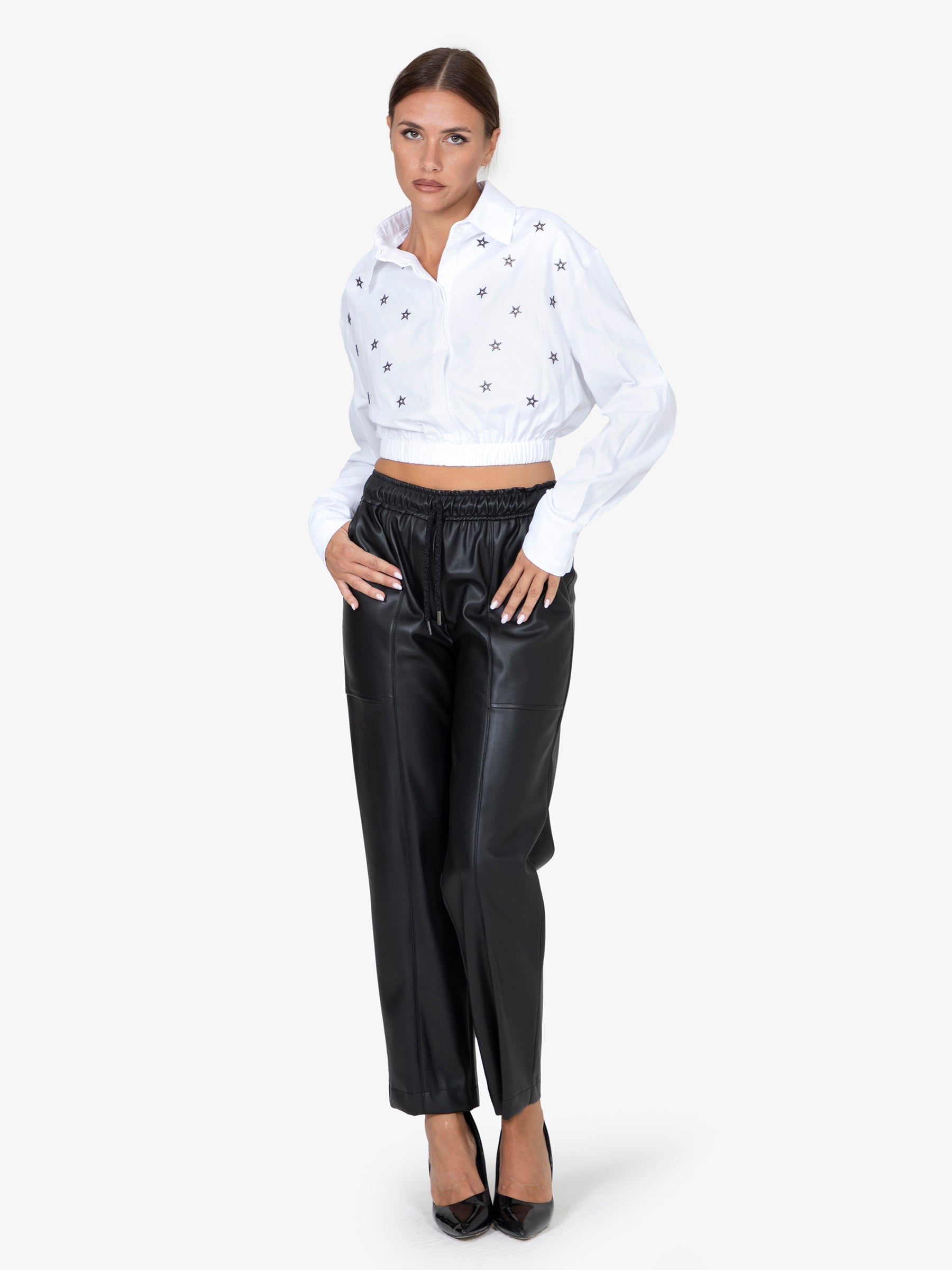 Questi pantaloni rappresentano un'affermazione di stile, perfetti per chi desidera distinguersi con un tocco di originalità. La loro versatilità li rende ideali per un look casual chic o per un'occasione speciale, facilmente abbinabili a bluse eleganti o a t-shirt minimaliste.