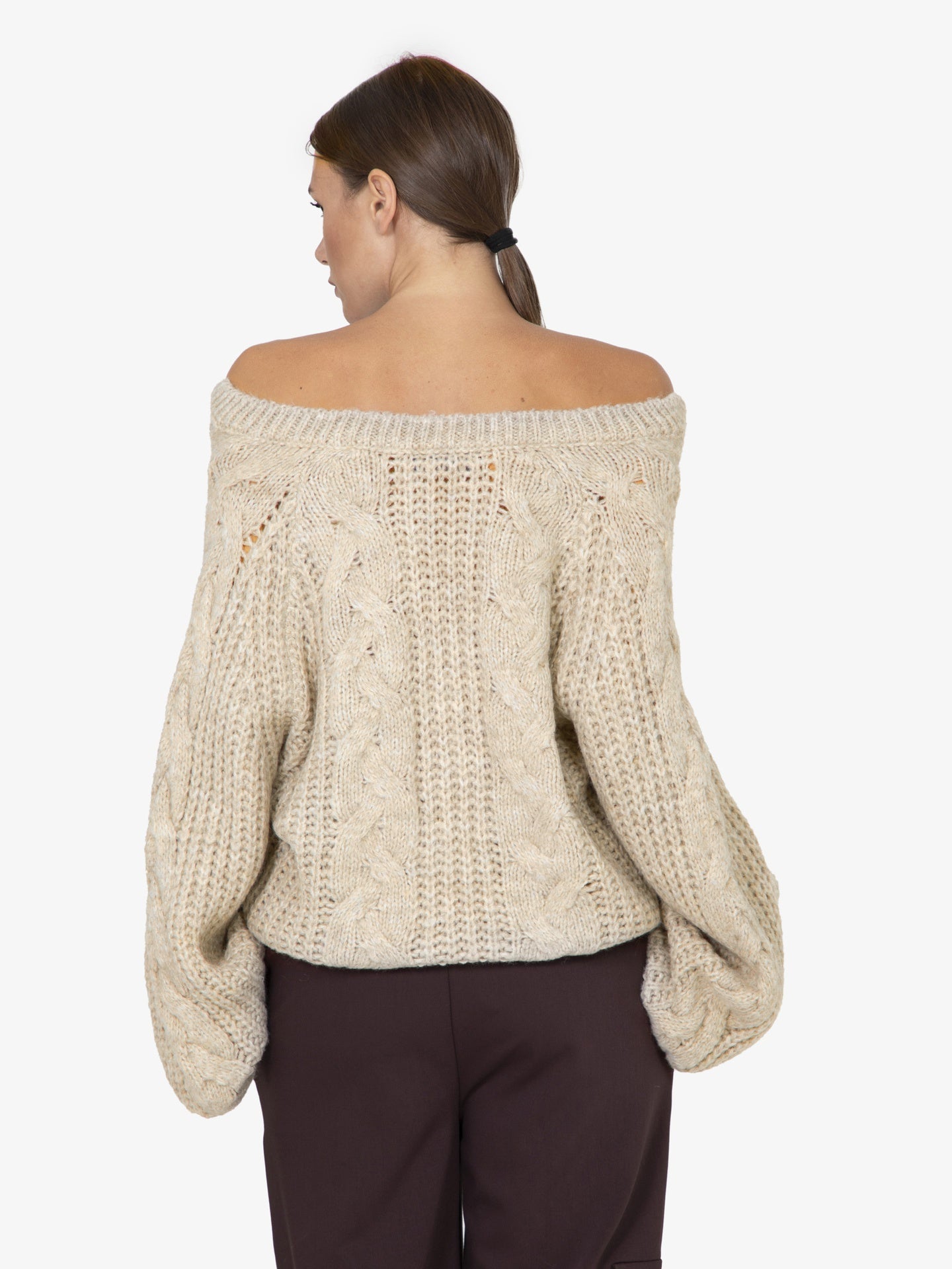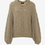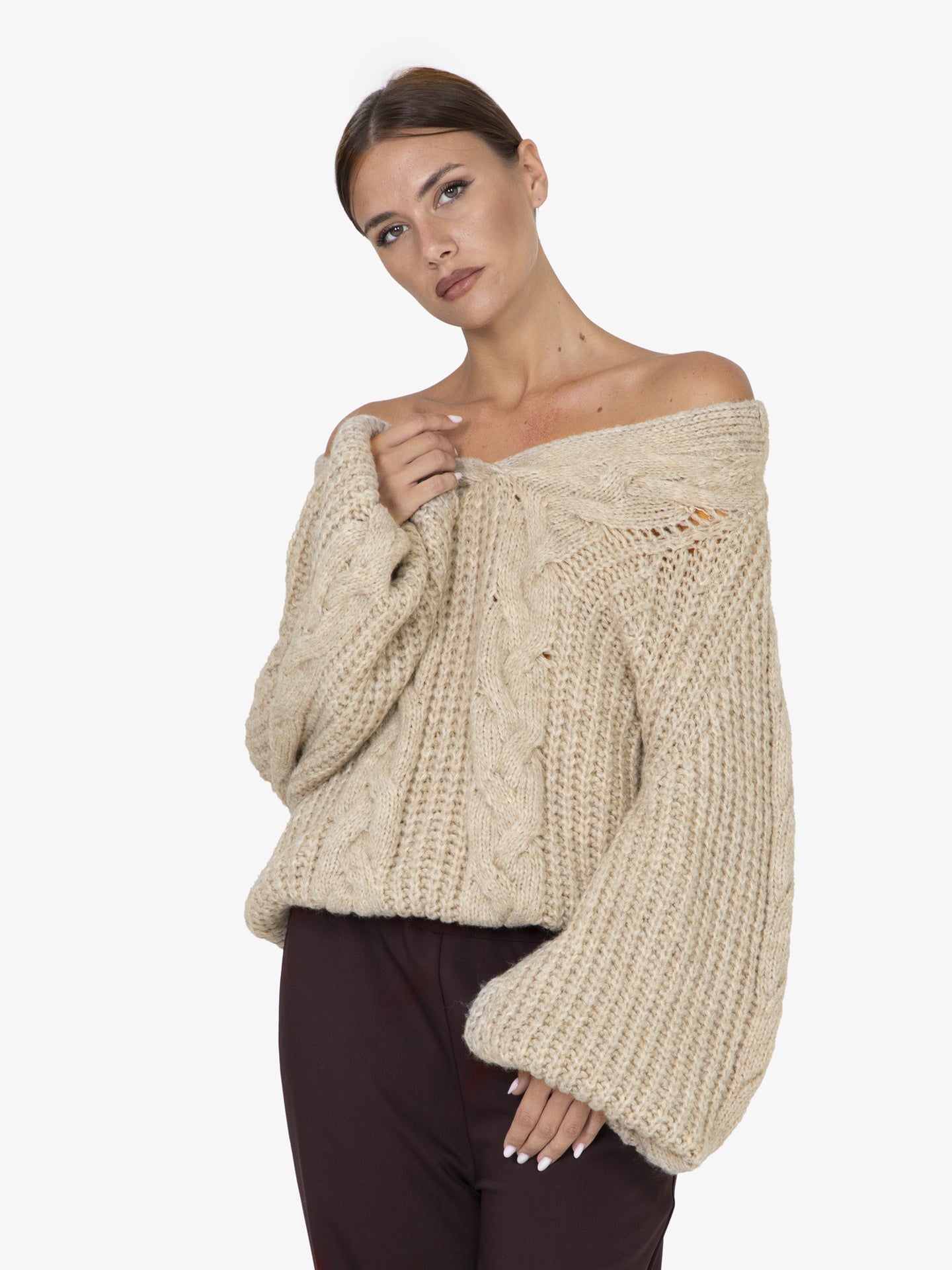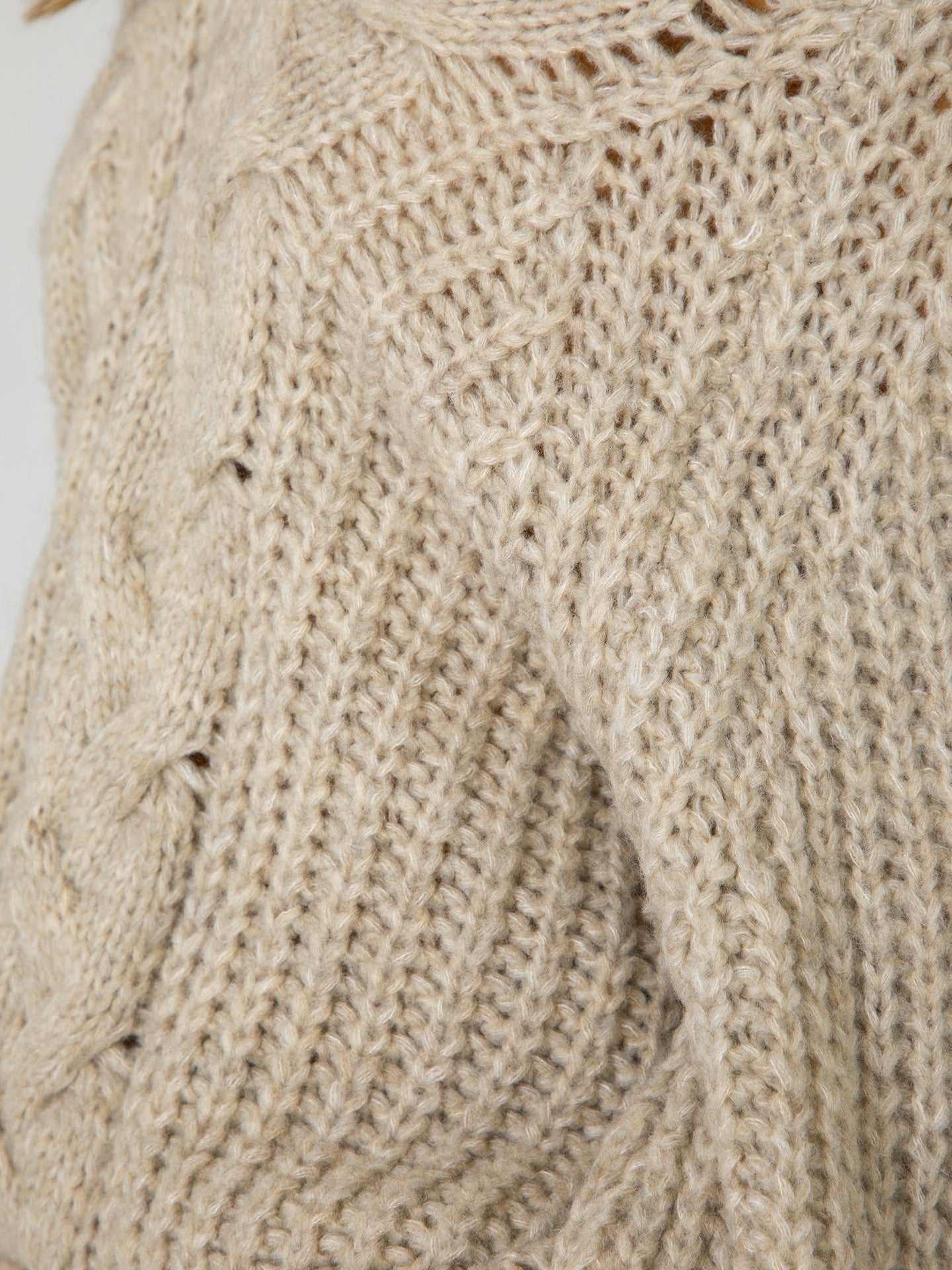 La lavorazione artigianale, un vero fiore all'occhiello del MADE IN ITALY, si traduce in un design unico, caratterizzato da una trama intricata e un taglio che valorizza la silhouette. Le maniche ampie e leggermente a sbuffo aggiungono un tocco di romanticismo e femminilità, rendendo questo maglione un elemento versatile per il tuo guardaroba.