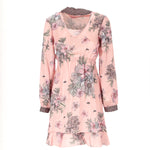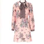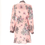 L'abito si distingue per la sua stampa floreale delicata e romantica, che dona un tocco di femminilità e vivacità. Il taglio è studiato per valorizzare la figura, con una linea morbida che accarezza le curve senza costringerle. I dettagli, come il colletto con fiocco removibile, aggiungono un tocco di originalità e permettono di personalizzare il look.