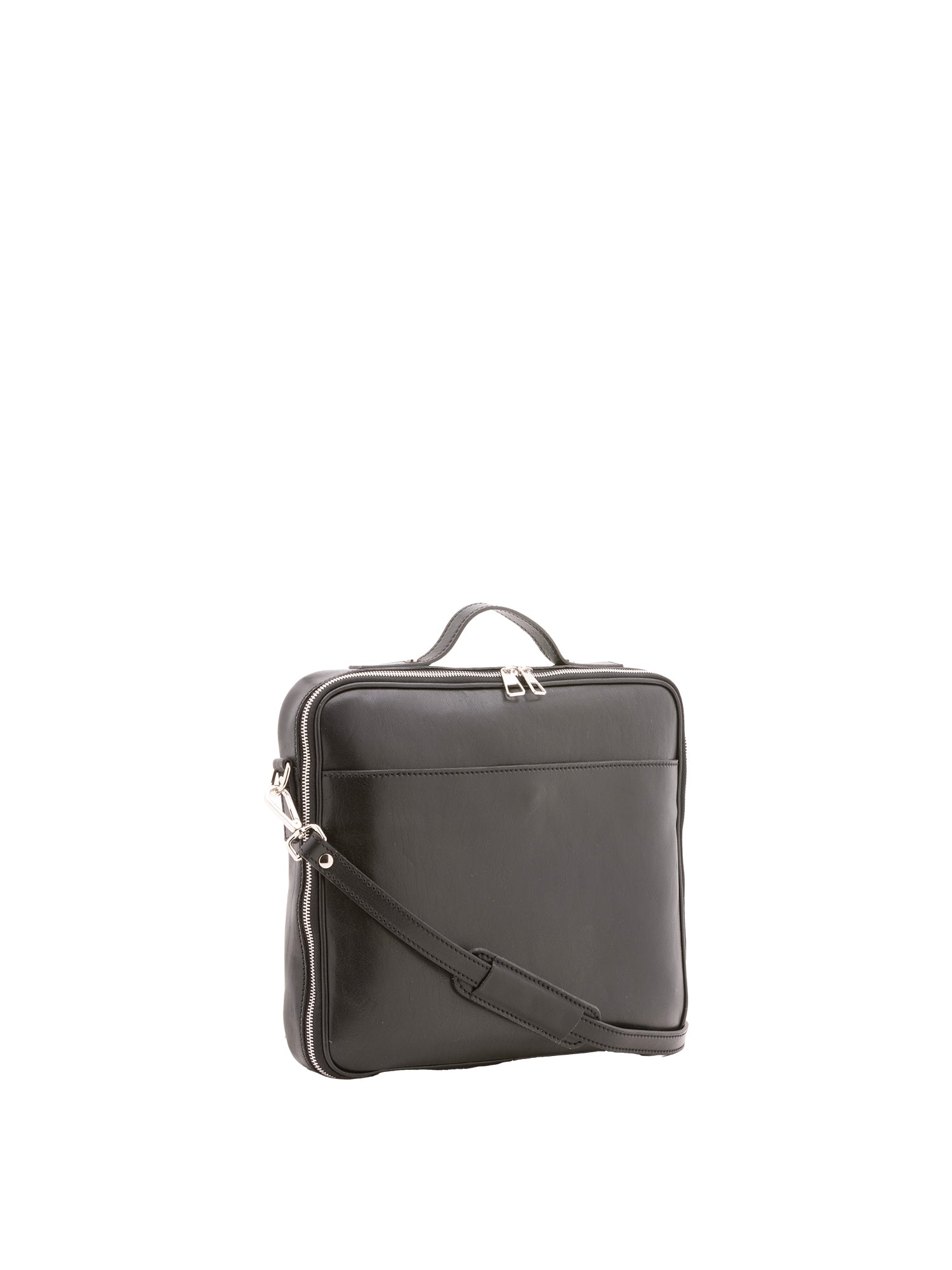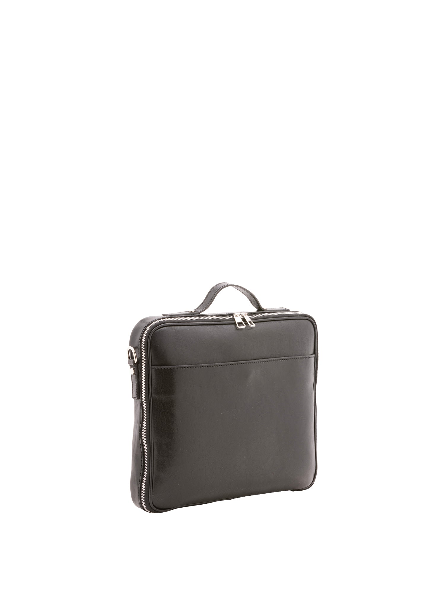 Borsa a mano unisex. La chiusura è con zip. Le tasche interne sono una aperta. Le tasche esterne sono una anteriore aperta. La tracolla è regolabile e rimovibile in pelle . Il manico è in pelle. Gli scomparti interni sono uno. Il materiale esterno è 100% Vera Pelle. Internamente è foderato in cotone. Misure: 38x32x6 cm . Made in Italy