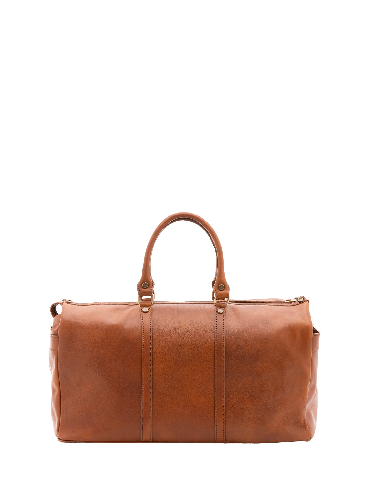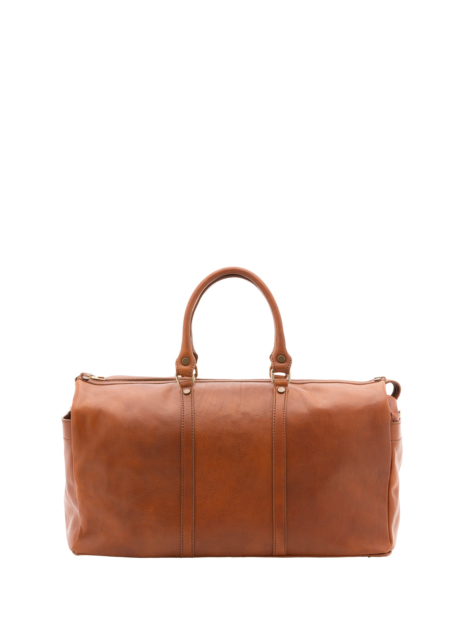 Borsa da viaggio unisex. La chiusura è con zip. Le tasche interne sono una con zip e una aperta. Le tasche esterne sono assenti. La tracolla è regolabile e rimovibile in pelle . Il manico è in pelle. Gli scomparti interni sono uno. Il materiale esterno è 100% Vera Pelle. Internamente è foderato in cotone. Misure: 50x35x20 cm . Made in Italy