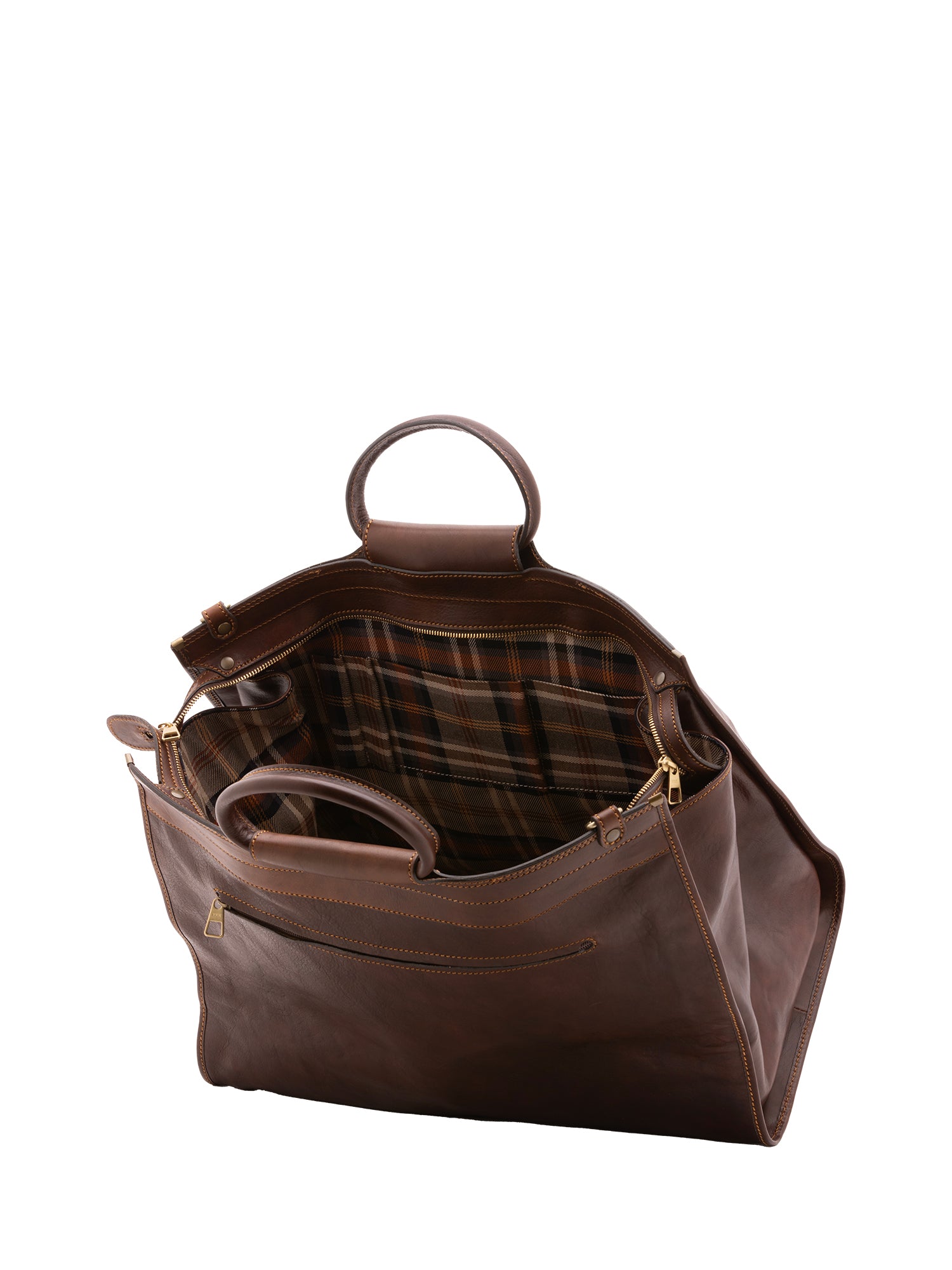 Borsa da viaggio unisex in vera pelle 100% cotone 4563-TESTA DI MORO Alessia Firenze