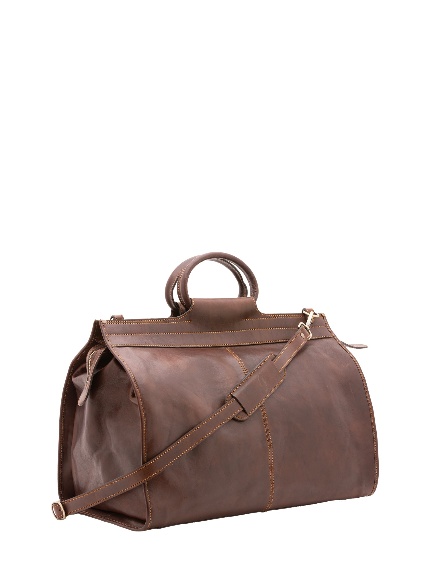 Borsa da viaggio unisex. La chiusura è con zip. Le tasche interne sono una con zip. Le tasche esterne sono una posteriore con zip. La tracolla è regolabile e rimovibile in pelle . Il manico è in pelle. Gli scomparti interni sono uno. Il materiale esterno è 100% Vera Pelle. Internamente è foderato in cotone. Misure: 49x39x24 cm . Made in Italy