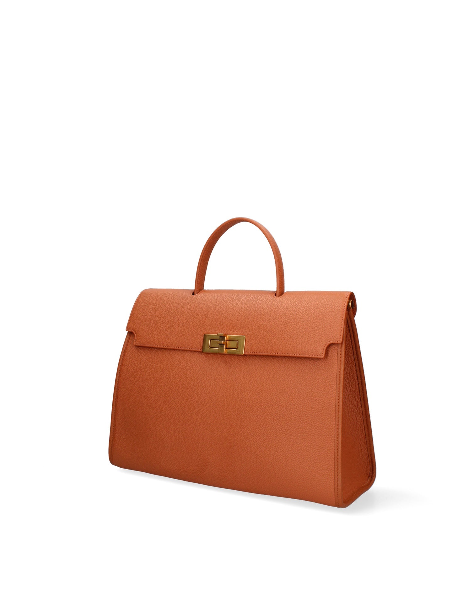 La sua forma classica e lineare, impreziosita dalla chiusura a girello in metallo dorato, la rende adatta a completare outfit casual e formali con un tocco di raffinatezza. L'interno sfoderato esalta la naturale bellezza della pelle e ne alleggerisce il peso, rendendola confortevole da portare con sé.