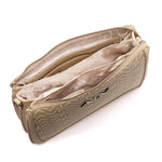Il design curato e la chiusura con zip assicurano praticità e sicurezza, mentre la tracolla, elegante e versatile, permette di indossare la borsa comodamente a spalla o a tracolla, adattandosi a ogni occasione.