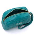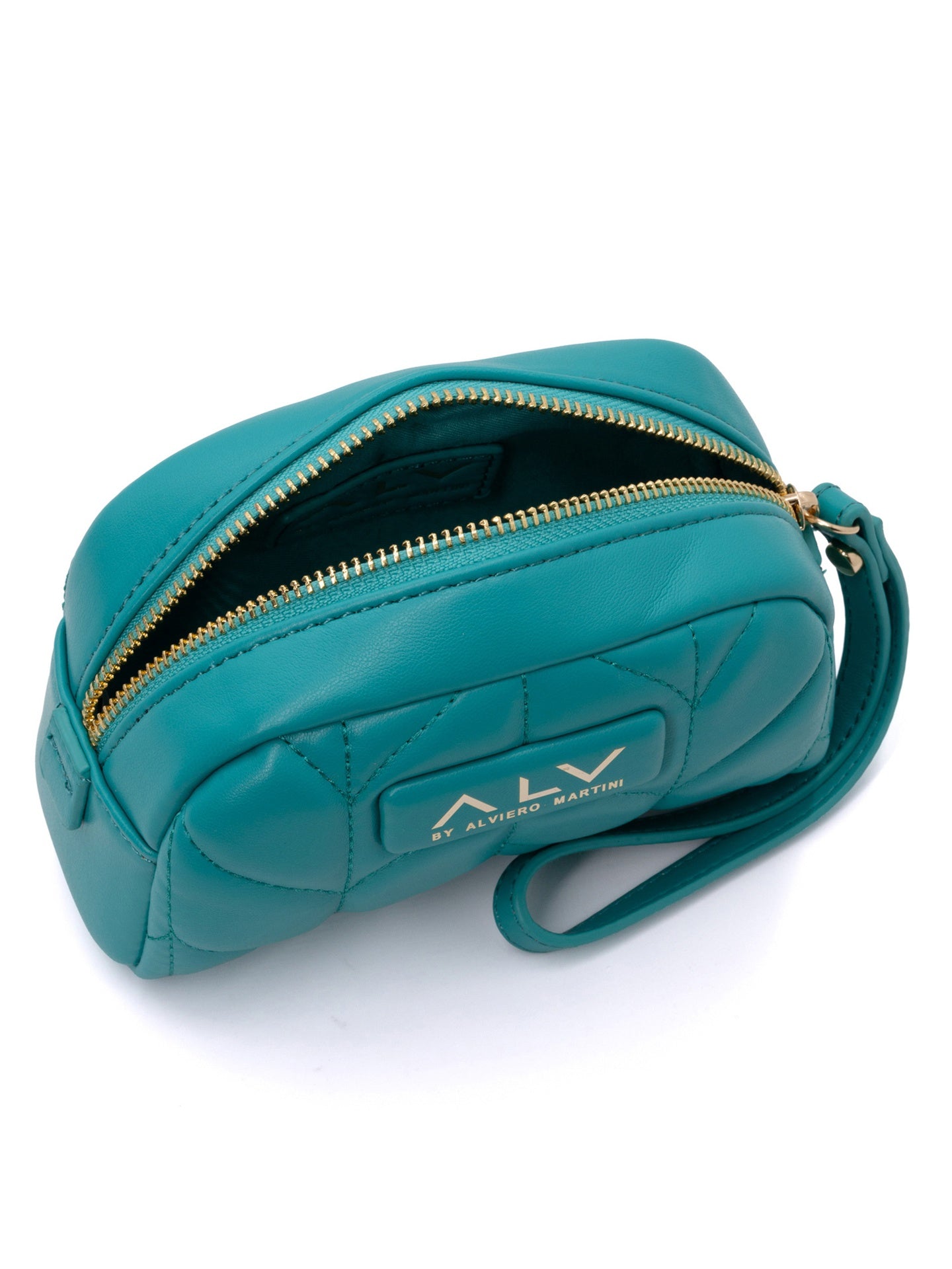 La superficie trapuntata conferisce un tocco di texture sofisticato, mentre la chiusura a zip garantisce la sicurezza dei tuoi effetti personali. L'interno, rivestito in poliestere resistente, offre lo spazio ideale per organizzare cosmetici, trucchi o piccoli oggetti essenziali.
