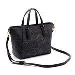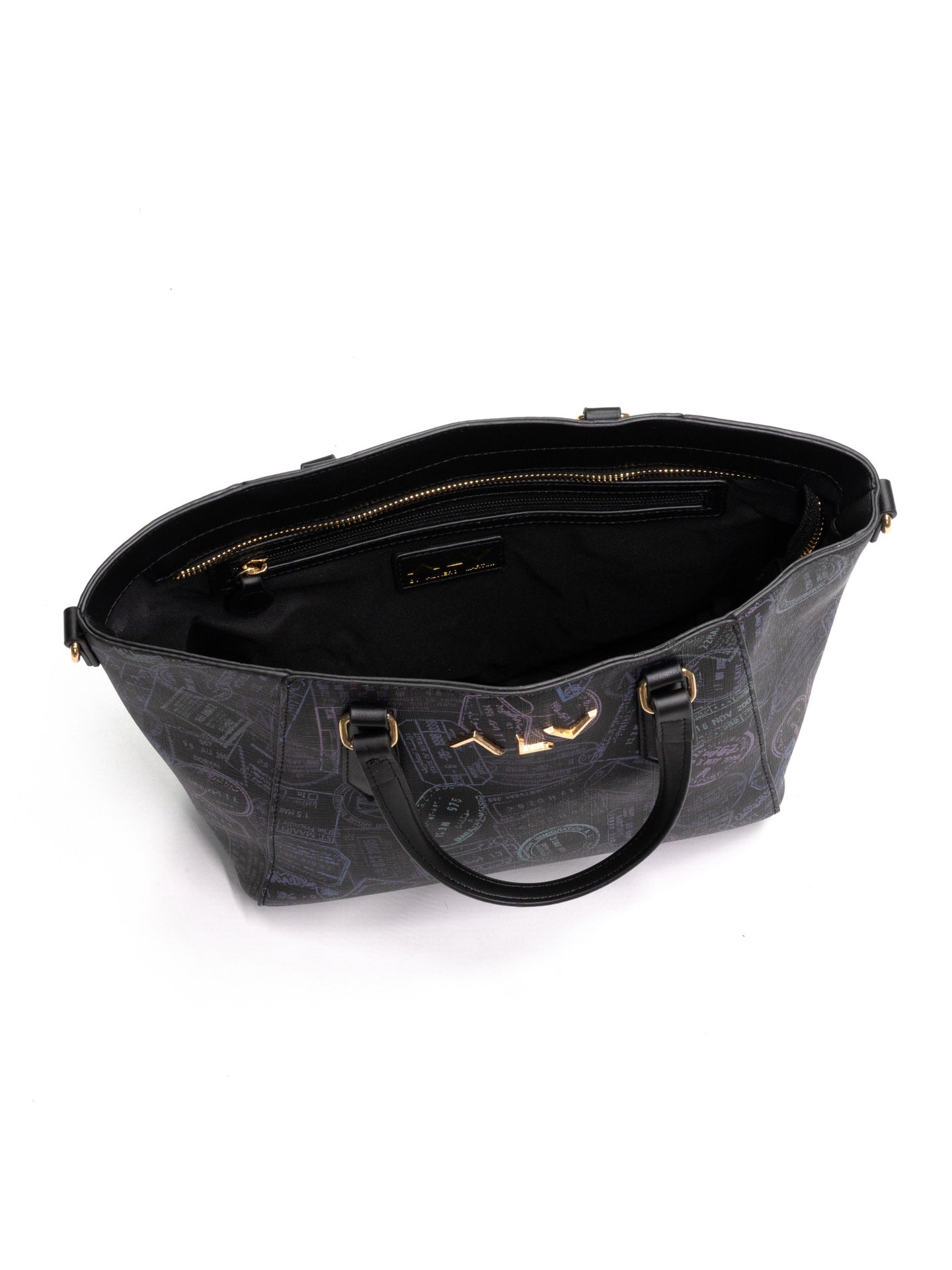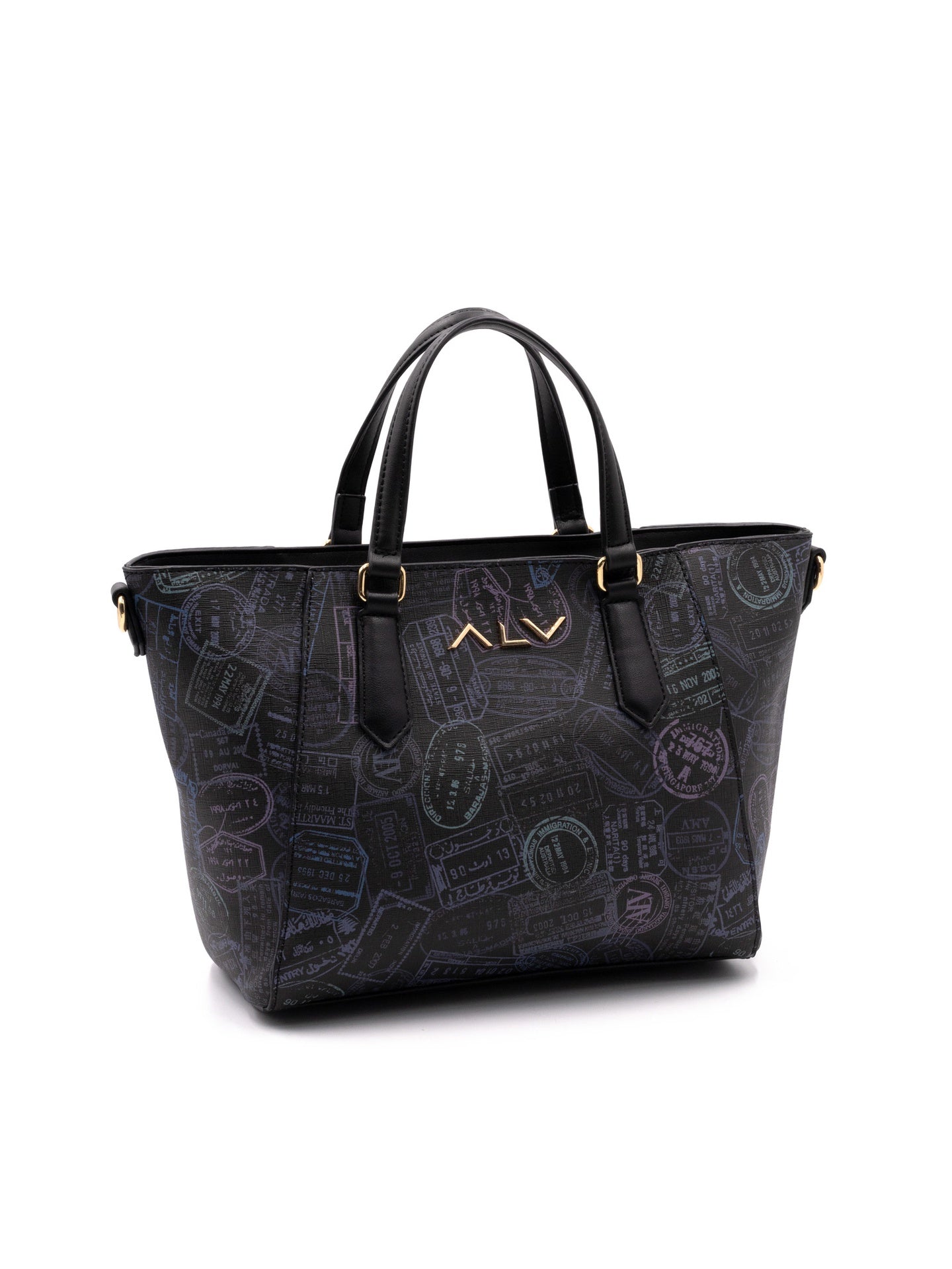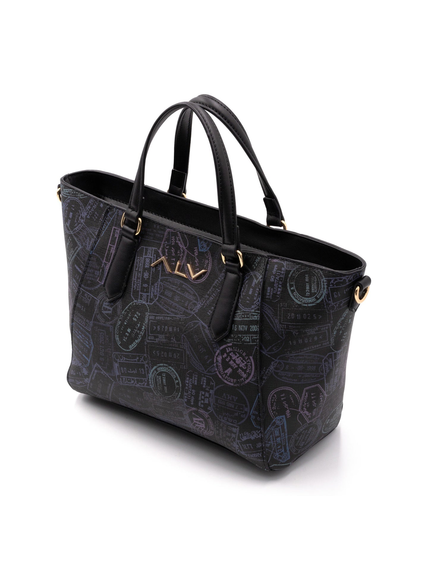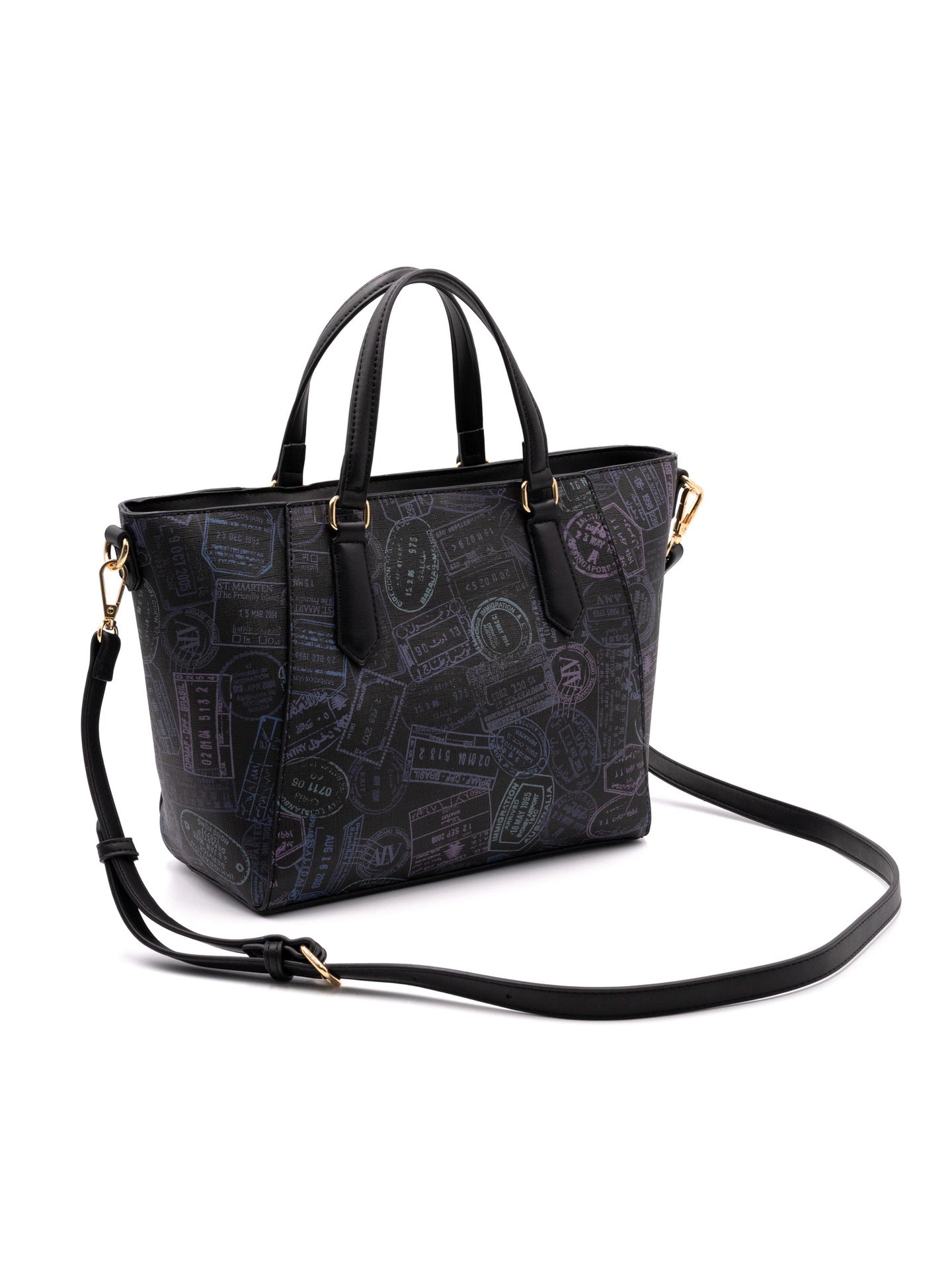 Un tocco di avventura e stile per il tuo quotidiano. Questa borsa a mano è l'accessorio perfetto per chi ama viaggiare con la mente e portare con sé un pizzico di originalità. Realizzata in 100% poliuretano di alta qualità, questa borsa unisce resistenza e un look distintivo, grazie alla stampa che ricorda i timbri da viaggio.