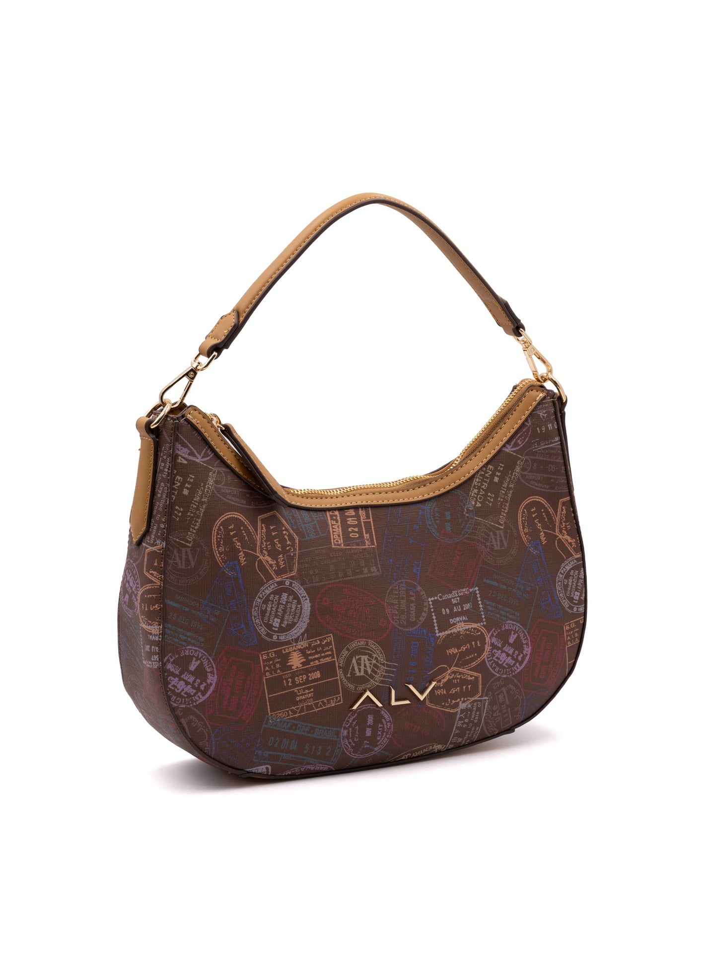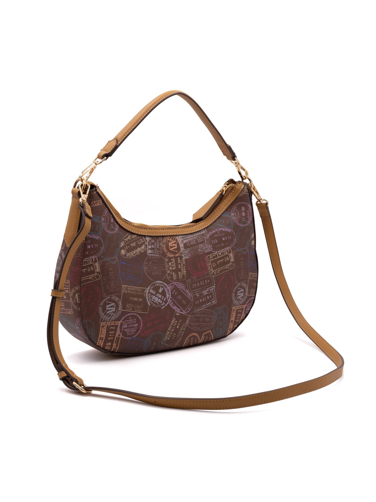 Esplora il mondo con stile grazie a questa elegante borsa a spalla, un accessorio che unisce praticità e un tocco di avventura. Realizzata in pregiato poliuretano al 100%, questa borsa presenta una stampa distintiva che evoca viaggi lontani e ricordi indelebili.