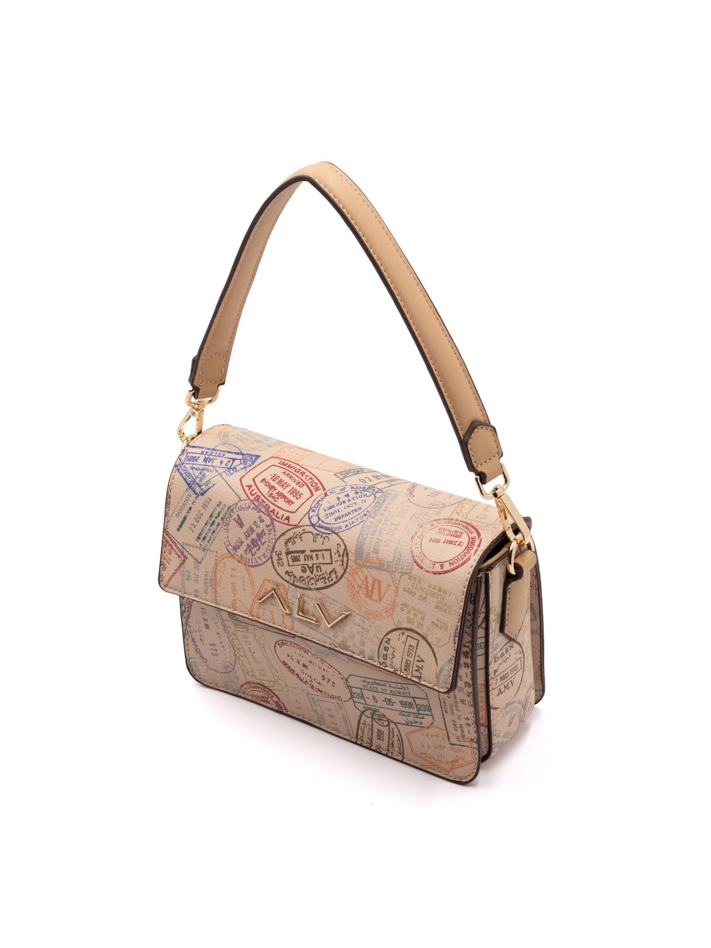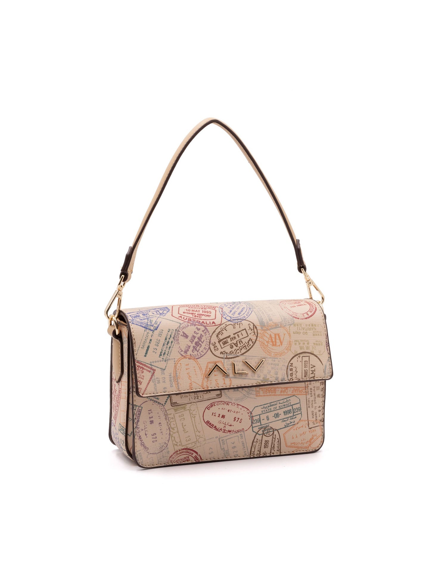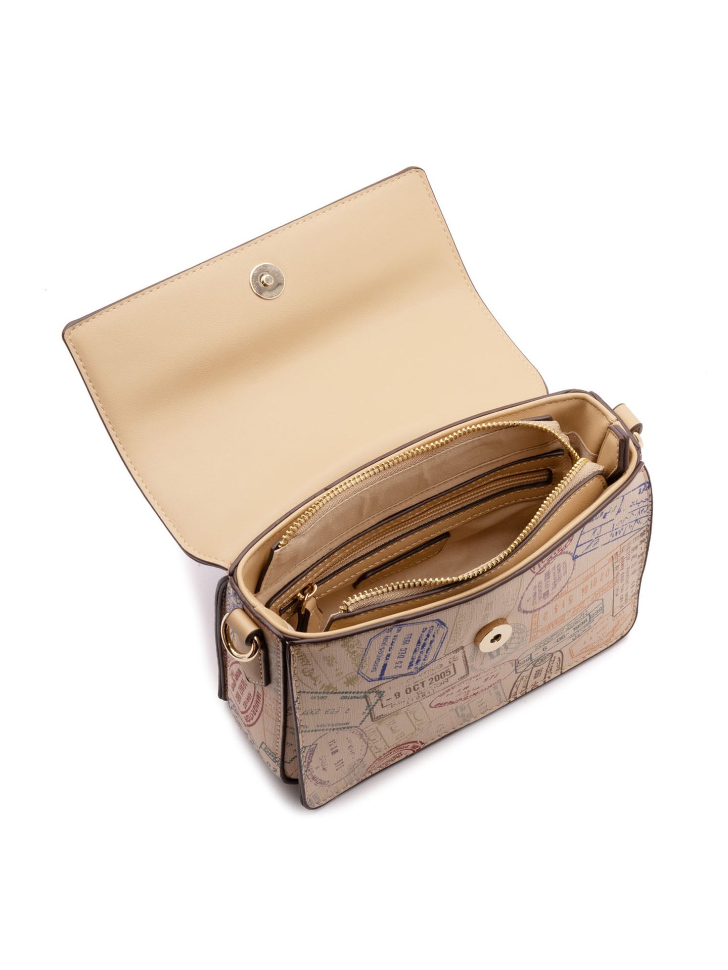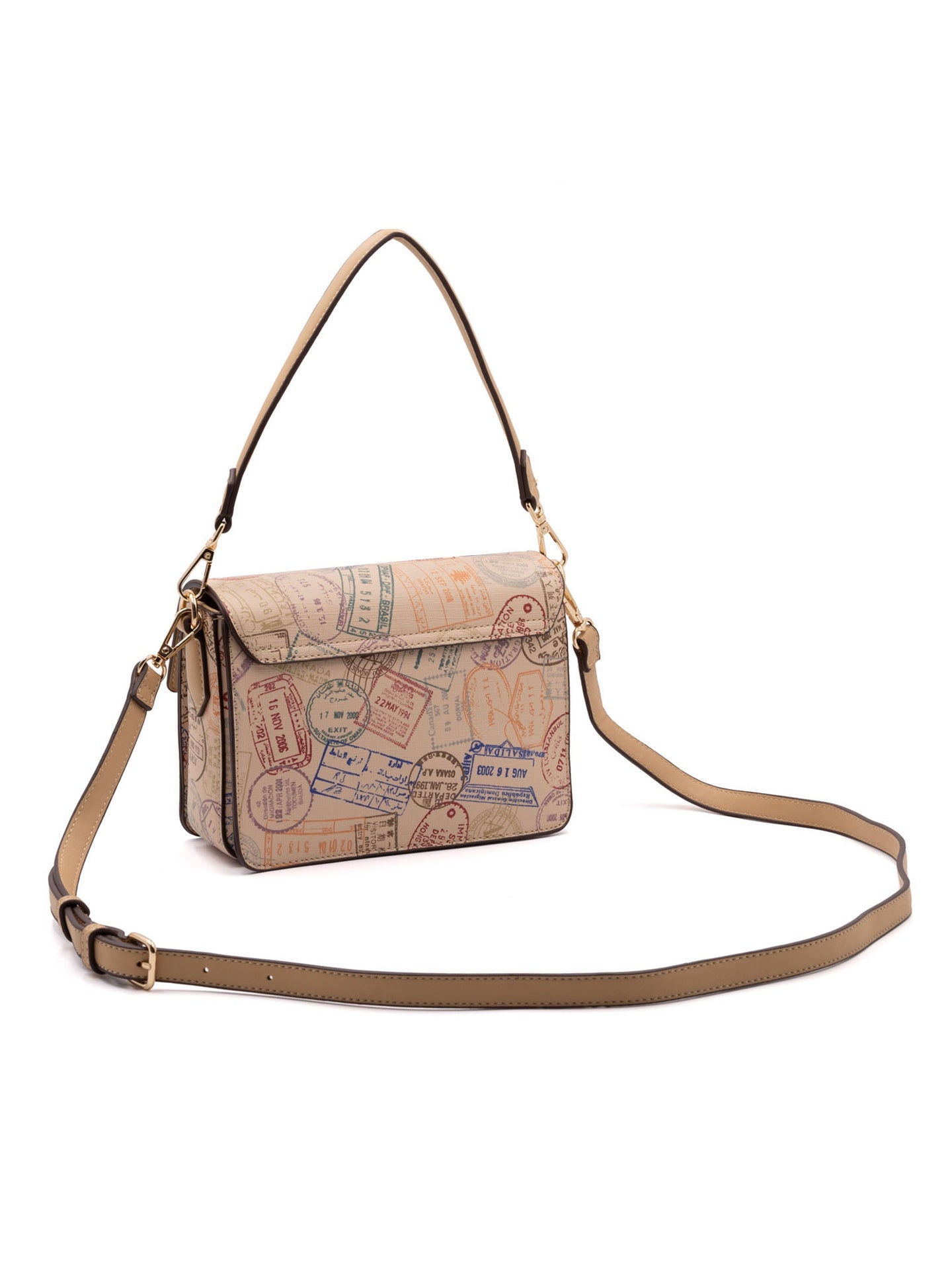 Realizzata in 100% poliuretano di alta qualità, questa borsa cattura l'attenzione con la sua stampa ispirata ai timbri di viaggio, che evoca ricordi di esplorazioni e scoperte. La texture raffinata e la cura dei dettagli la rendono un vero e proprio gioiello artigianale.