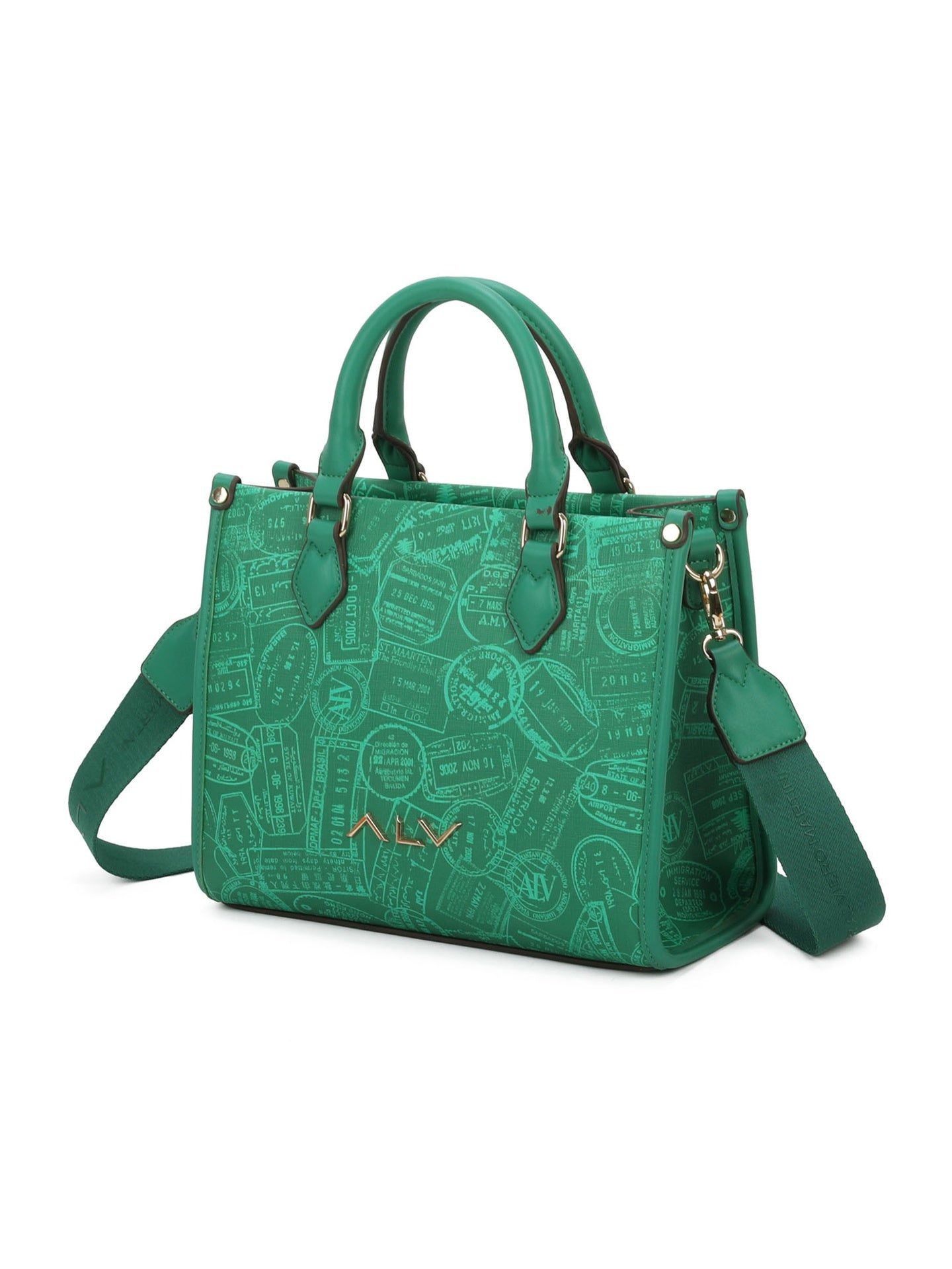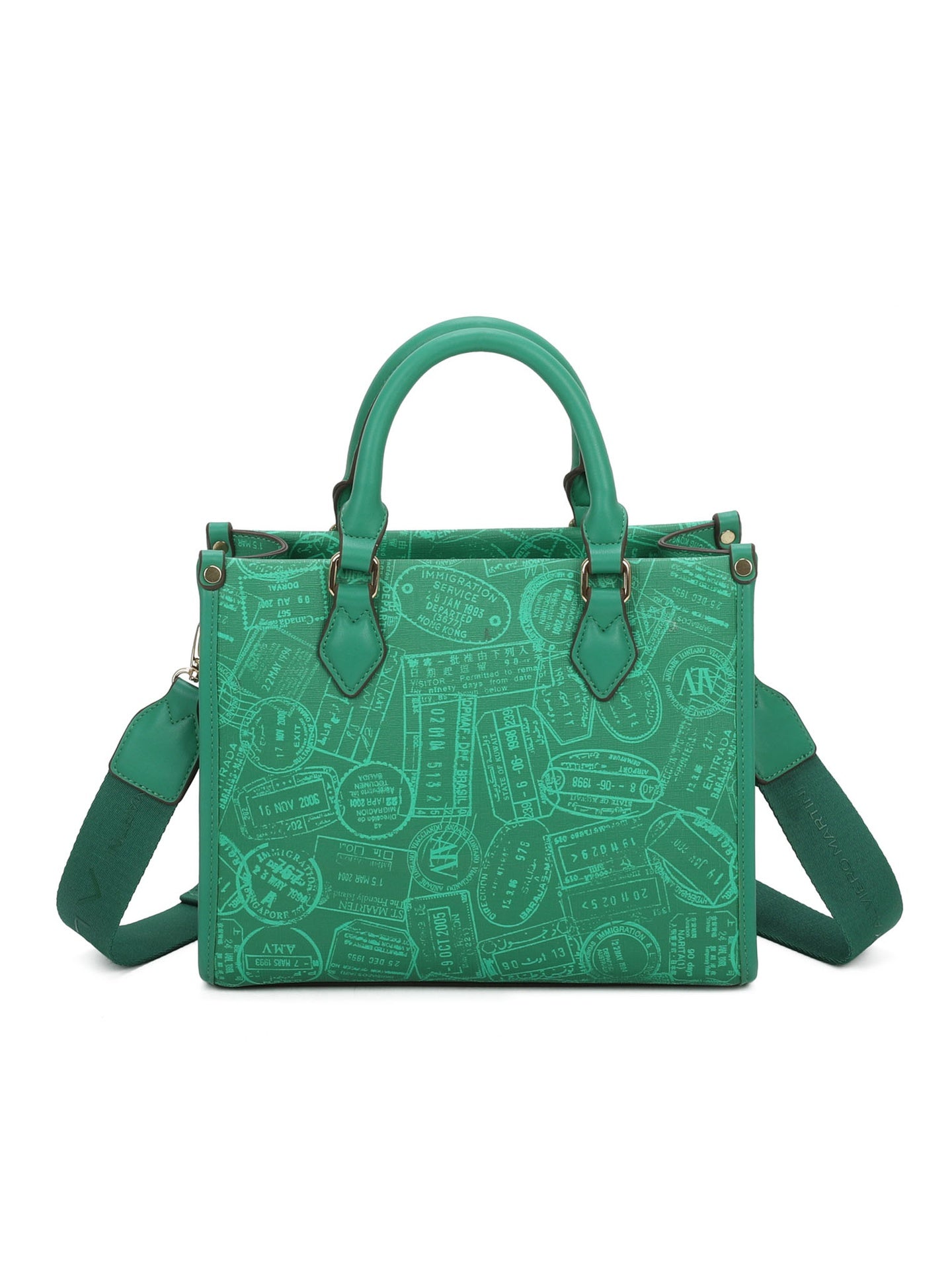 Realizzata in 100% poliuretano di alta qualità, la superficie è impreziosita da una stampa accattivante che richiama l'atmosfera dei viaggi e delle scoperte. La texture resistente e raffinata si unisce a una palette di colori vibrante, rendendo questa borsa un vero e proprio statement.