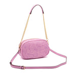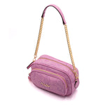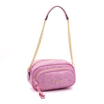 La tracolla, abbinata ad una catena dorata, aggiunge un tocco glamour e permette di indossare la borsa comodamente a spalla o a tracolla.