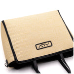 L'interno foderato in poliestere garantisce praticità e resistenza, mentre la chiusura con zip assicura la sicurezza dei tuoi effetti personali. La borsa è arricchita da dettagli curati, testimonianza di una lavorazione artigianale di alta qualità.