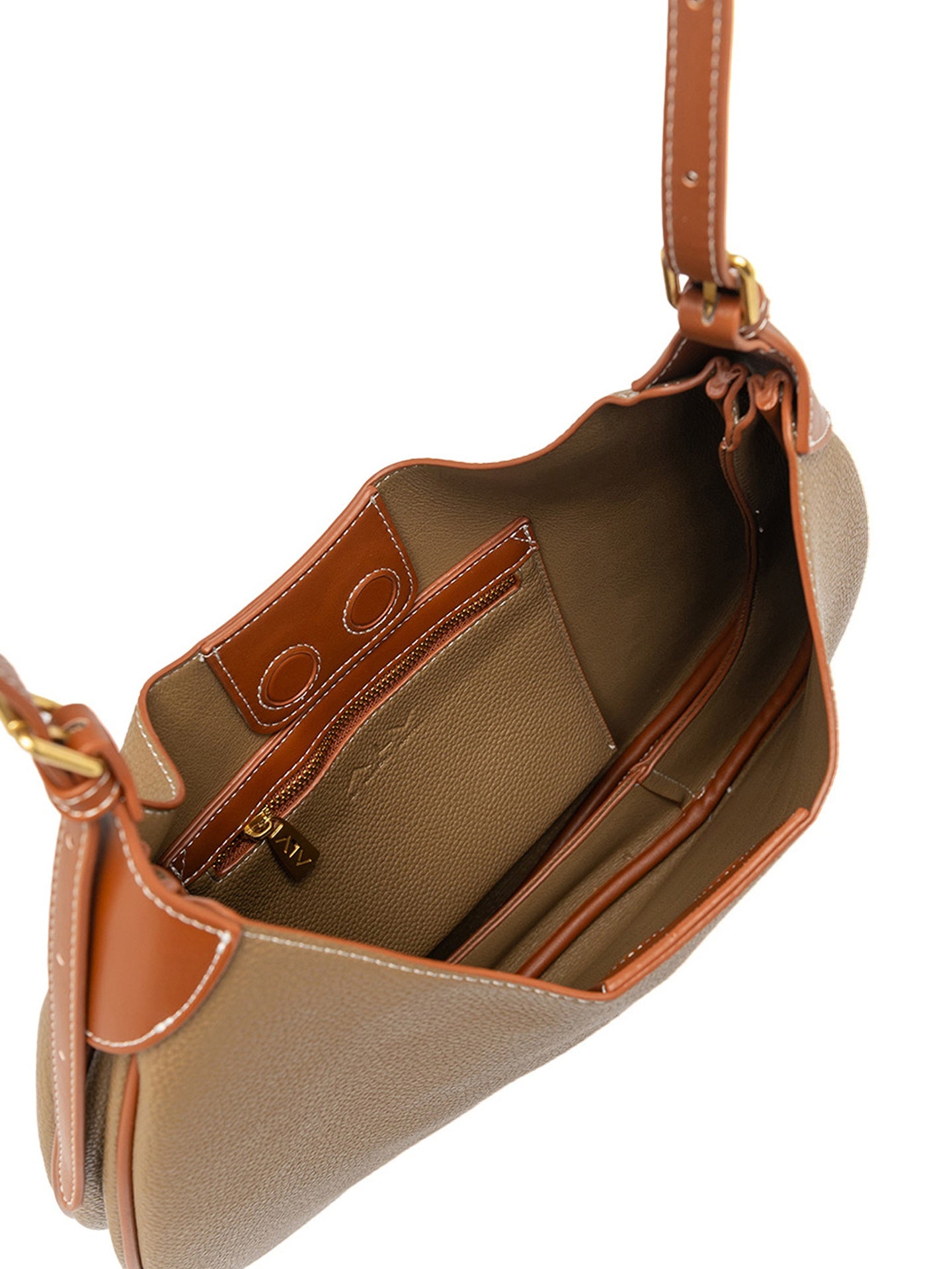 L'interno, foderato in poliestere resistente, offre spazio sufficiente per tutti i tuoi essenziali quotidiani. La tracolla, lunga 55 cm, permette un comodo trasporto a spalla, ideale per un look casual ma ricercato.