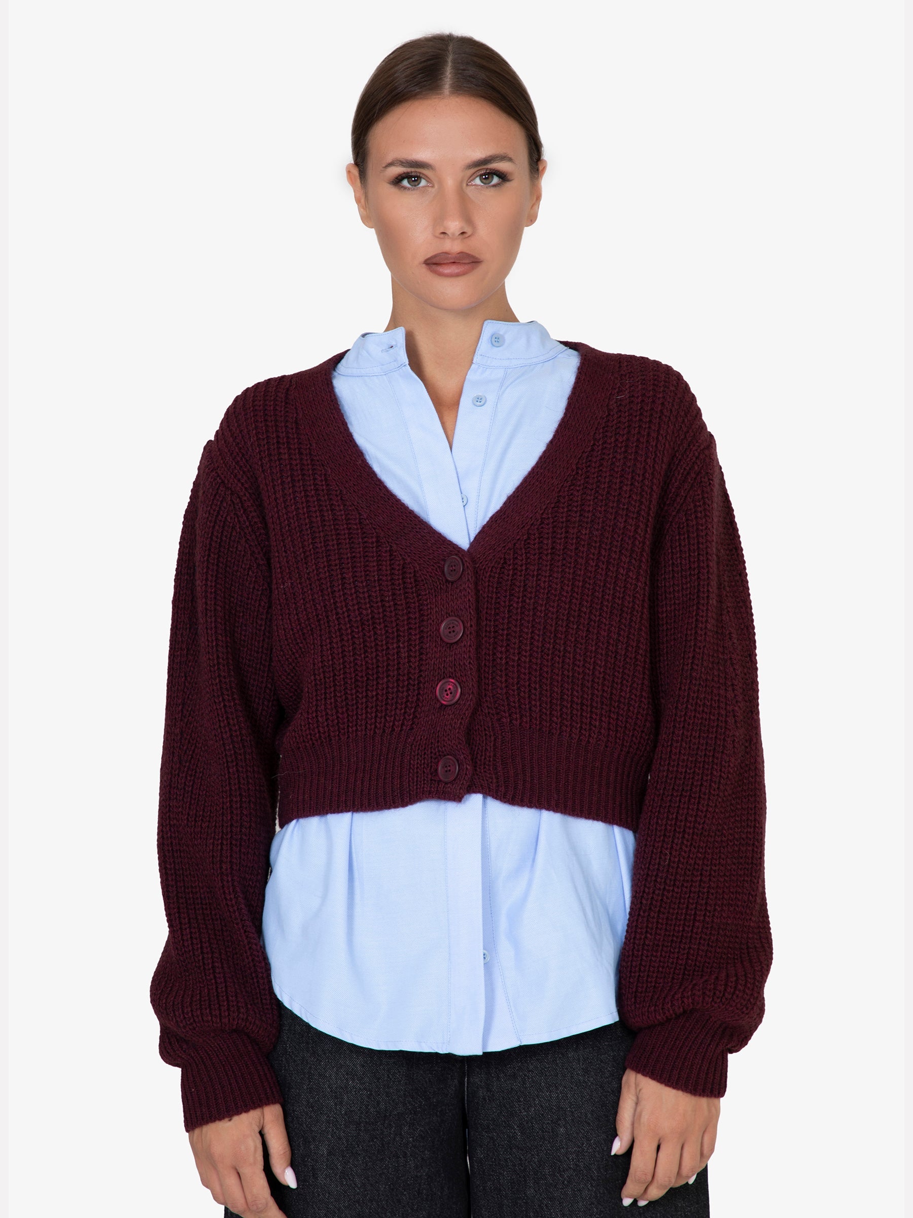 La texture delicata e il taglio studiato valorizzano la figura, mentre i dettagli sartoriali e la chiusura frontale con bottoni aggiungono un tocco di classe. Le maniche ampie e leggermente a sbuffo conferiscono un’allure romantica e sofisticata, perfetta per essere indossato sia con un look casual che con un outfit più ricercato.