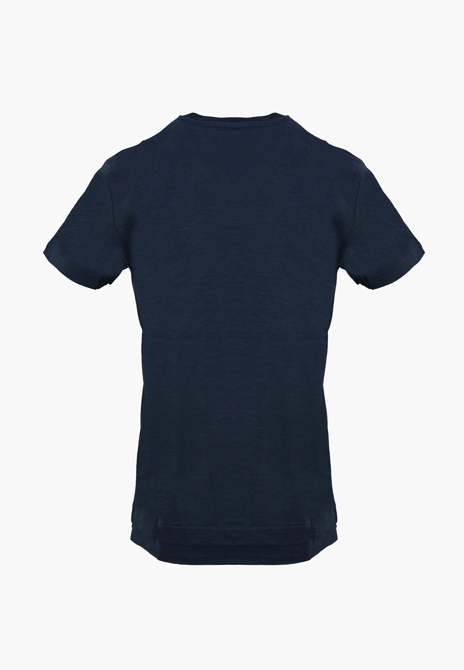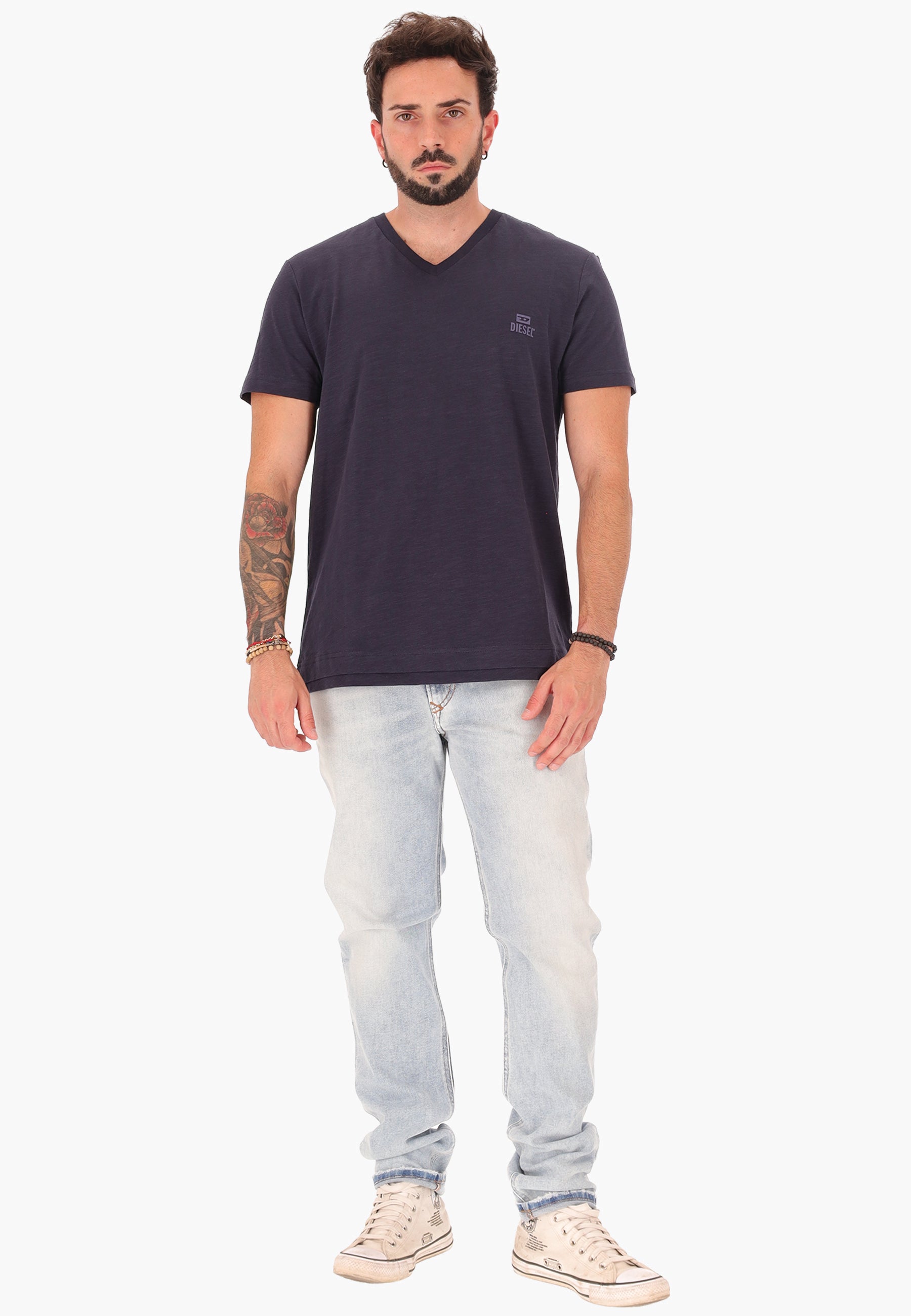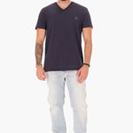 Il taglio aderente esalta la silhouette, mentre la scollatura a V aggiunge un tocco di stile sofisticato e versatile. Ideale per un look casual ma curato, questa t-shirt si adatta facilmente a diverse occasioni, dal tempo libero alle serate con gli amici.