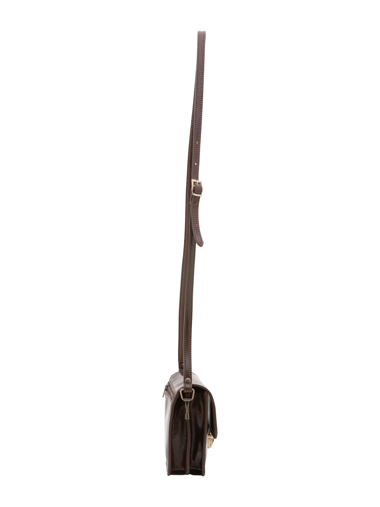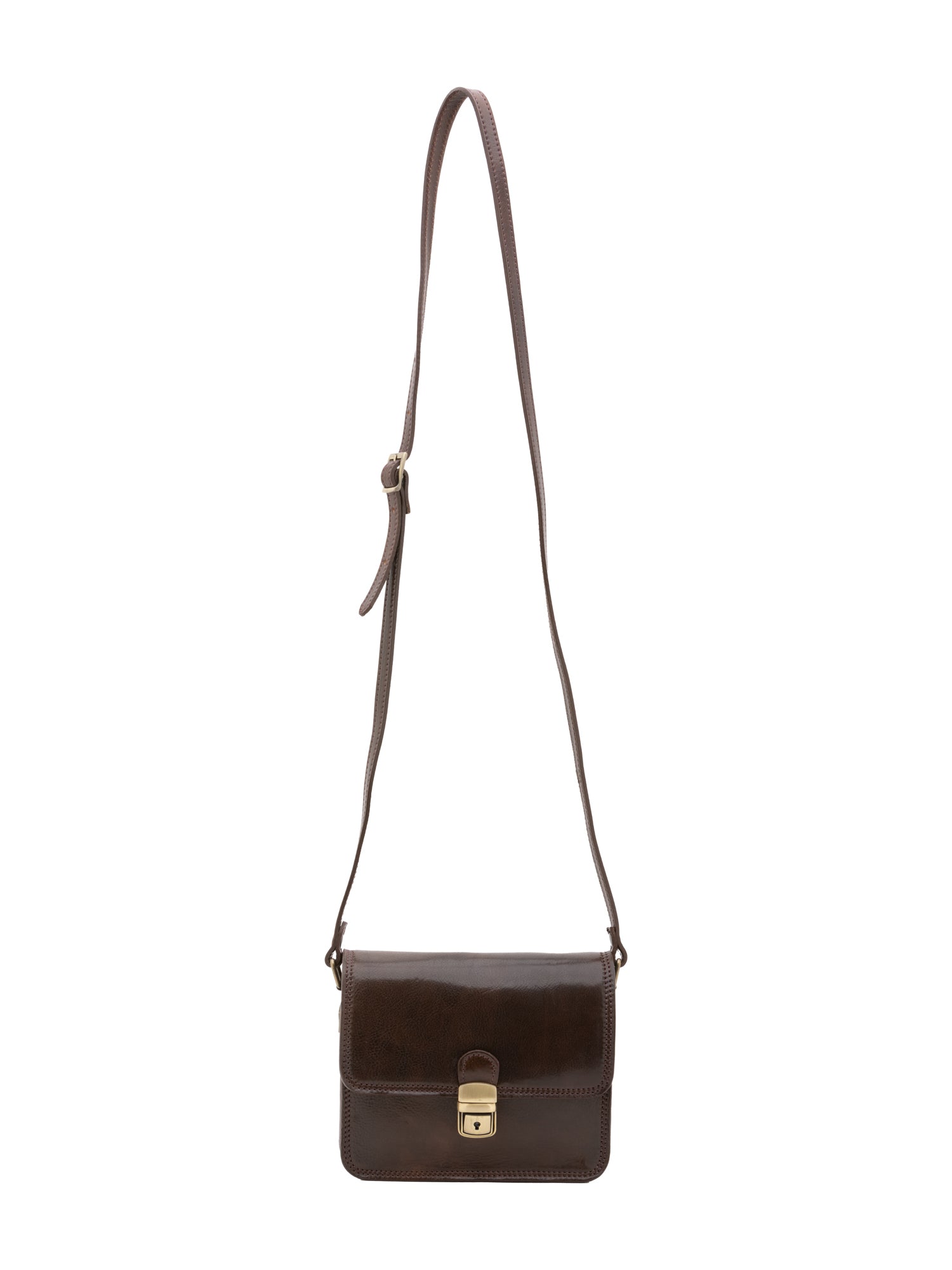 Borsa a tracolla da donna. La chiusura è a scatto. Le tasche interne sono una con zip. Le tasche esterne sono una posteriore con zip. La tracolla è regolabile in pelle. Il manico è assente. Gli scomparti interni sono due. Il materiale esterno è vera pelle vacchetta. Internamente è foderato in cotone. Misure: 20x16x7 cm . Made in Italy