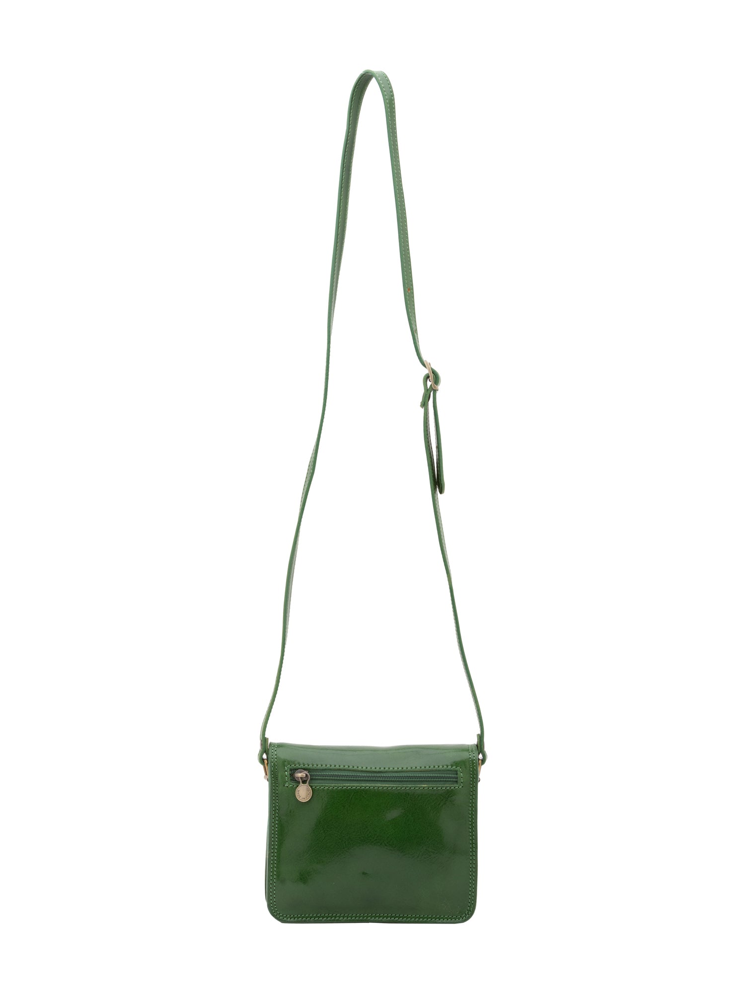 Borsa a tracolla da donna. La chiusura è a scatto. Le tasche interne sono una con zip. Le tasche esterne sono una posteriore con zip. La tracolla è regolabile in pelle. Il manico è assente. Gli scomparti interni sono due. Il materiale esterno è vera pelle vacchetta. Internamente è foderato in cotone. Misure: 20x16x7 cm . Made in Italy
