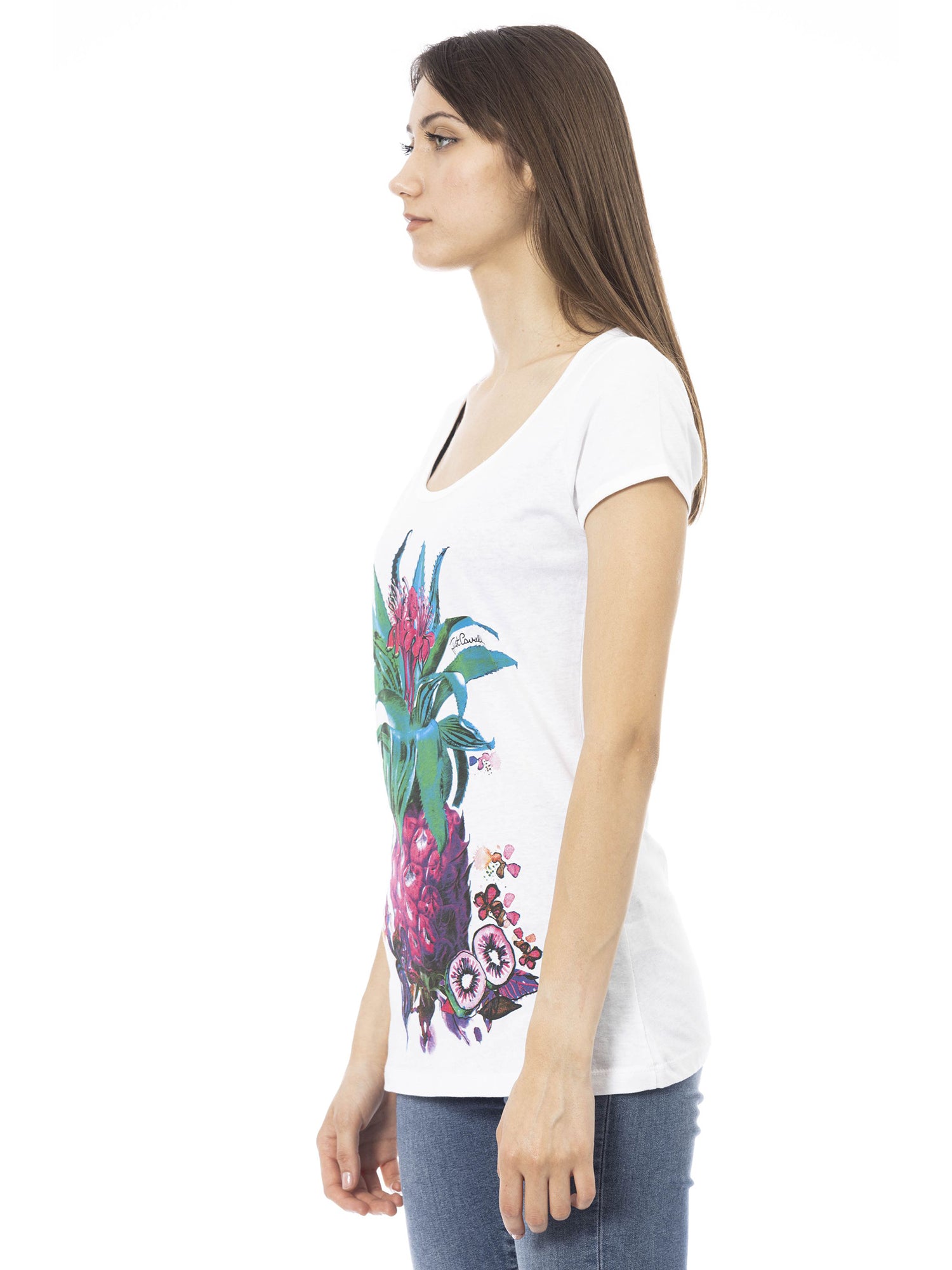 Ideale per le giornate di sole o per un look serale informale, questa t-shirt è un capo versatile che si adatta a ogni occasione. La sua composizione in puro cotone garantisce traspirabilità e comfort anche nelle giornate più calde.