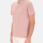 Polo a maniche corte in tessuto piquet con colletto a costine. Lavaggio marmorizzato effetto invecchiato con effetti di ricamo "hand made" e stampa "fiori" nel sottosmalto. Chiusura polo con asole e bottoni in diversi materiali.