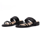Il design minimalista è arricchito da sottili cinturini che avvolgono il piede con delicatezza, garantendo una calzata sicura e confortevole. La suola piatta offre un sostegno ottimale per camminare con agilità durante tutta la giornata.