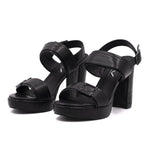 Eleva il tuo stile con questi sandali dal design moderno e sofisticato. Realizzati in poliestere di alta qualità, offrono un comfort duraturo e un look impeccabile. La chiusura a cinturino assicura una calzata personalizzata e sicura, mentre il tacco largo dona stabilità e un tocco di eleganza.