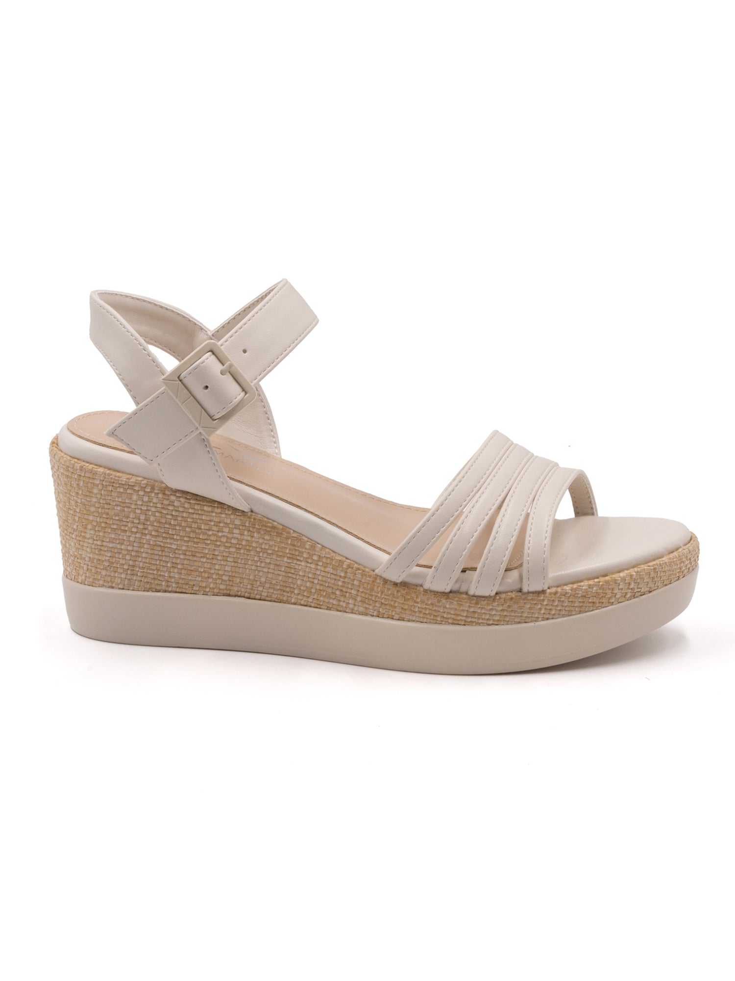 La chiusura a cinturino garantisce una calzata sicura e personalizzata, mentre il tacco a zeppa intrecciato aggiunge un tocco di originalità e raffinatezza. La silhouette elegante e minimalista si adatta perfettamente a qualsiasi outfit, dal look casual di tutti i giorni all'abito più elegante per le serate speciali.