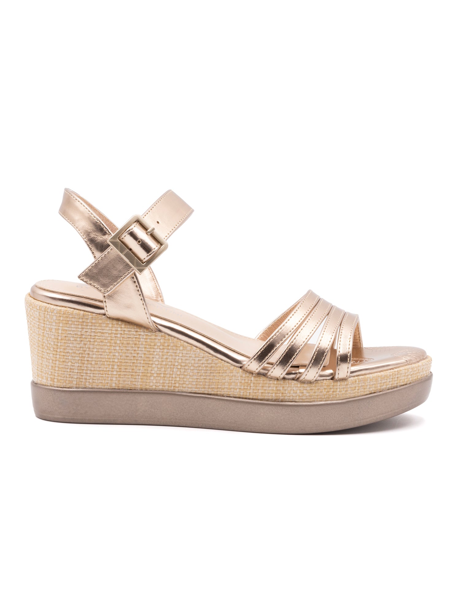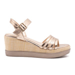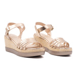 La chiusura a cinturino garantisce una calzata sicura e personalizzata, mentre il tacco a zeppa intrecciato aggiunge un tocco di originalità e raffinatezza. La silhouette elegante e minimalista si adatta perfettamente a qualsiasi outfit, dal look casual di tutti i giorni all'abito più elegante per le serate speciali.
