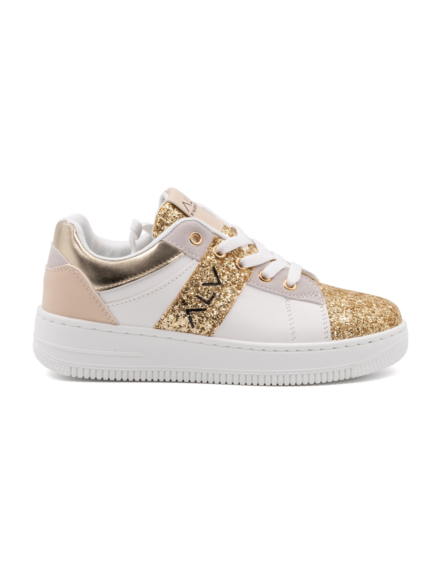 La tomaia in poliestere offre resistenza e leggerezza, mentre il dettaglio scintillante aggiunge un tocco di glamour inaspettato. L'interno in poliestere garantisce traspirabilità e comfort durante tutto il giorno.