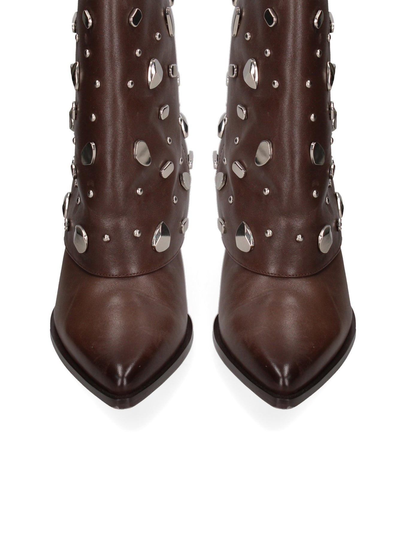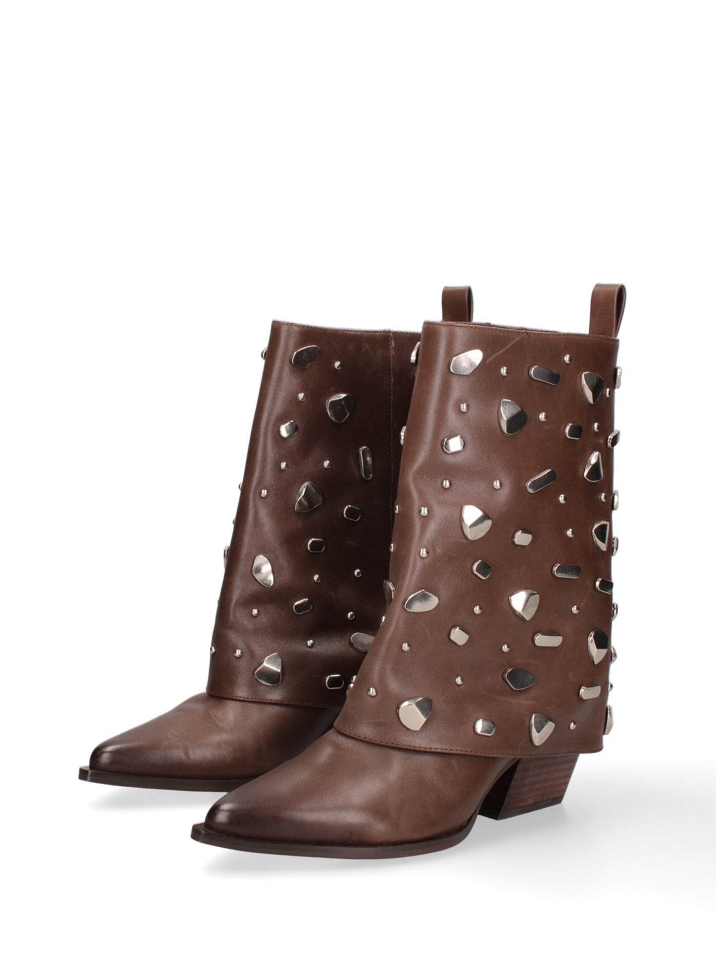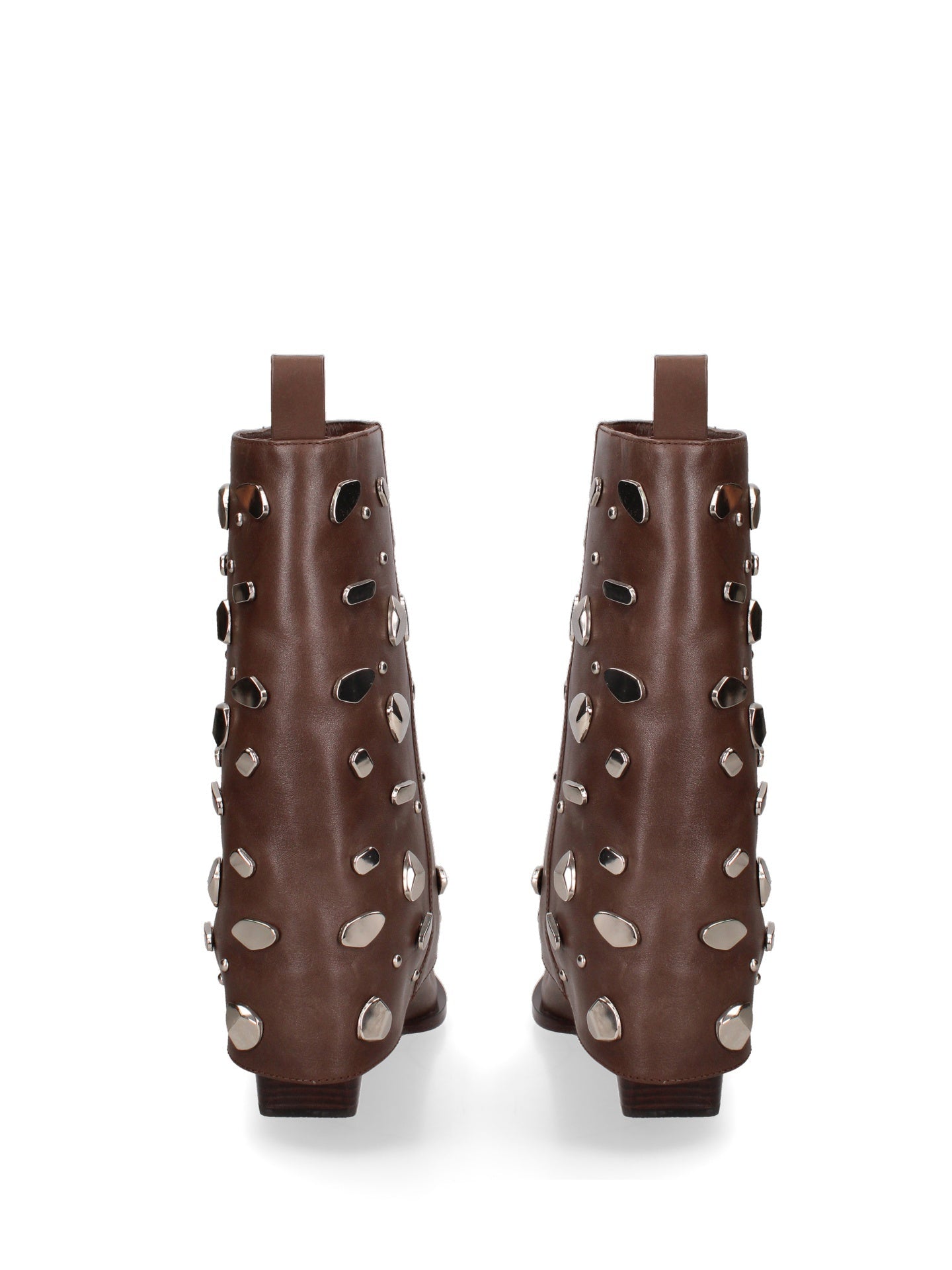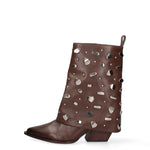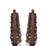 Lasciati conquistare da questi stivaletti dal fascino audace e senza tempo. Realizzati interamente in vera pelle di alta qualità, incarnano un perfetto equilibrio tra artigianalità e stile contemporaneo. La texture ricca e naturale della pelle è valorizzata da dettagli unici: applicazioni di elementi decorativi che catturano lo sguardo e conferiscono un tocco di originalità inconfondibile.