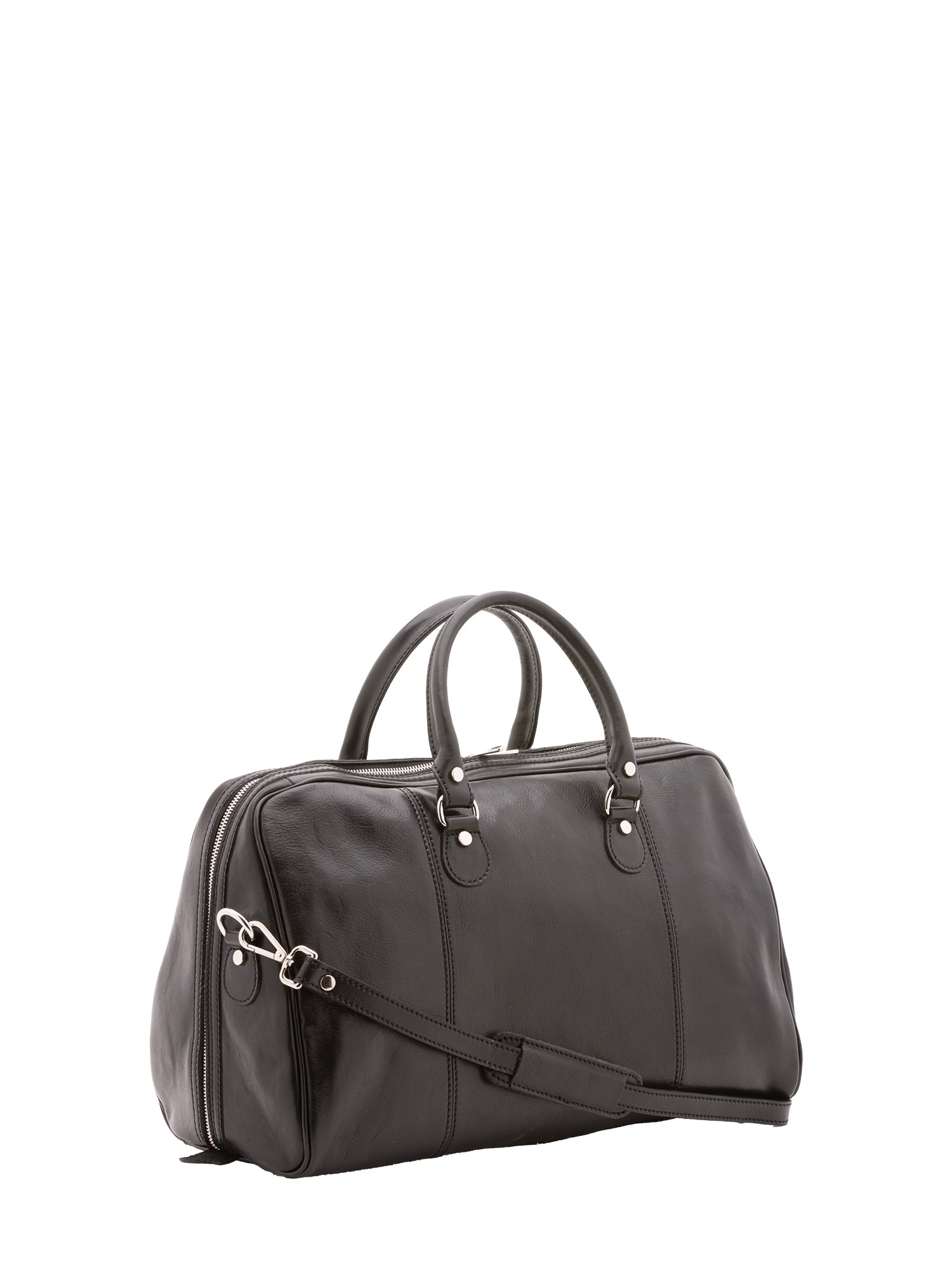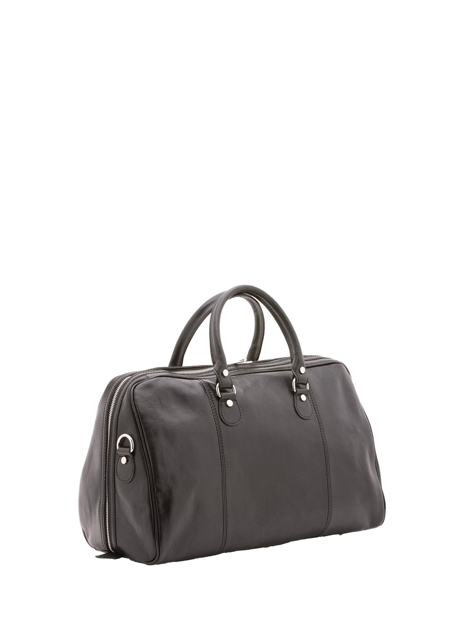 Unisex-Reisetasche. Reißverschluss. Eine Innentasche mit Reißverschluss. Es gibt keine Außentaschen. Der Schultergurt ist verstellbar und abnehmbar und besteht aus Leder. Der Tragegriff ist ebenfalls aus Leder. Es gibt ein Innenfach. Das Außenmaterial besteht aus 100 % echtem Leder. Das Innenfutter ist aus Baumwolle. Maße: 47 x 36 x 15 cm. Hergestellt in Italien.