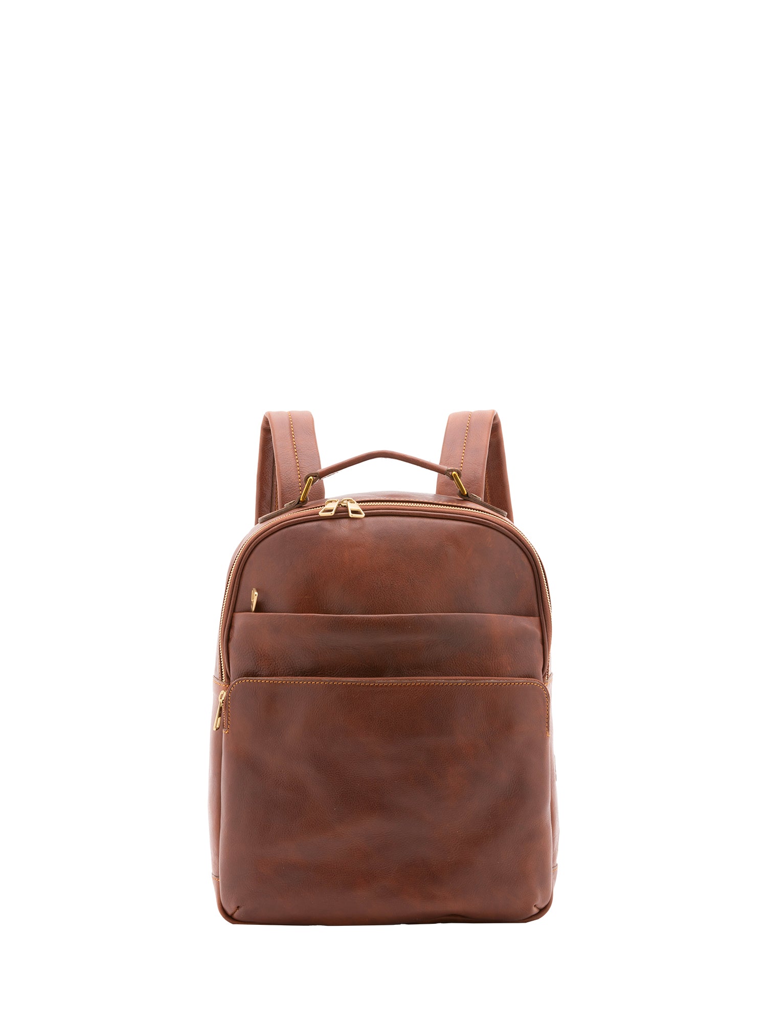 Unisex-Rucksack. Reißverschluss. Eine offene Innentasche. Zwei Außentaschen mit Reißverschluss vorne. Der verstellbare Schultergurt aus Leder. Der Tragegriff ist ebenfalls aus Leder. Ein Innenfach. Das Außenmaterial besteht aus 100 % echtem Leder. Innen ist es mit Baumwolle gefüttert. Maße: 39 x 31 x 10 cm. Hergestellt in Italien.