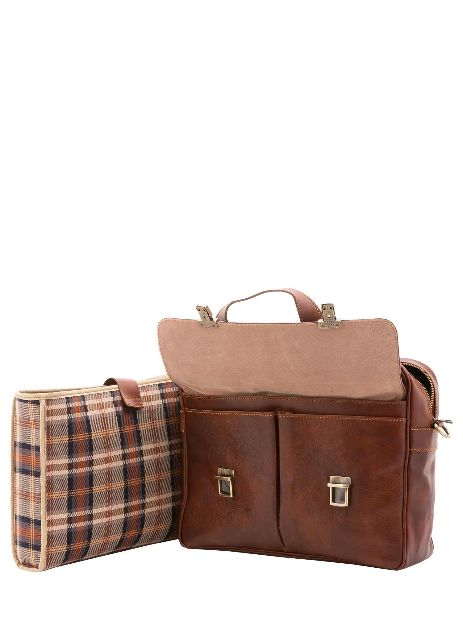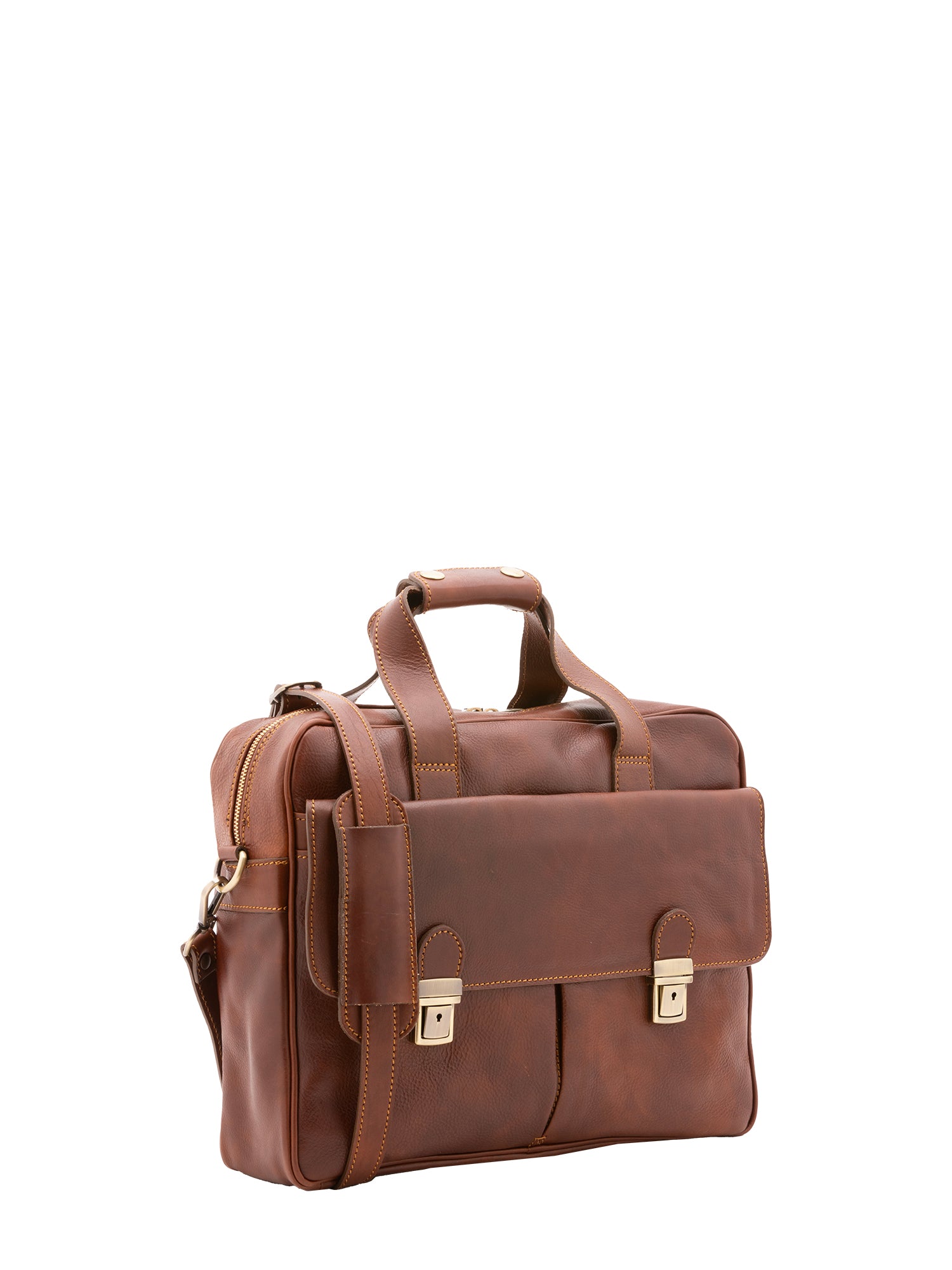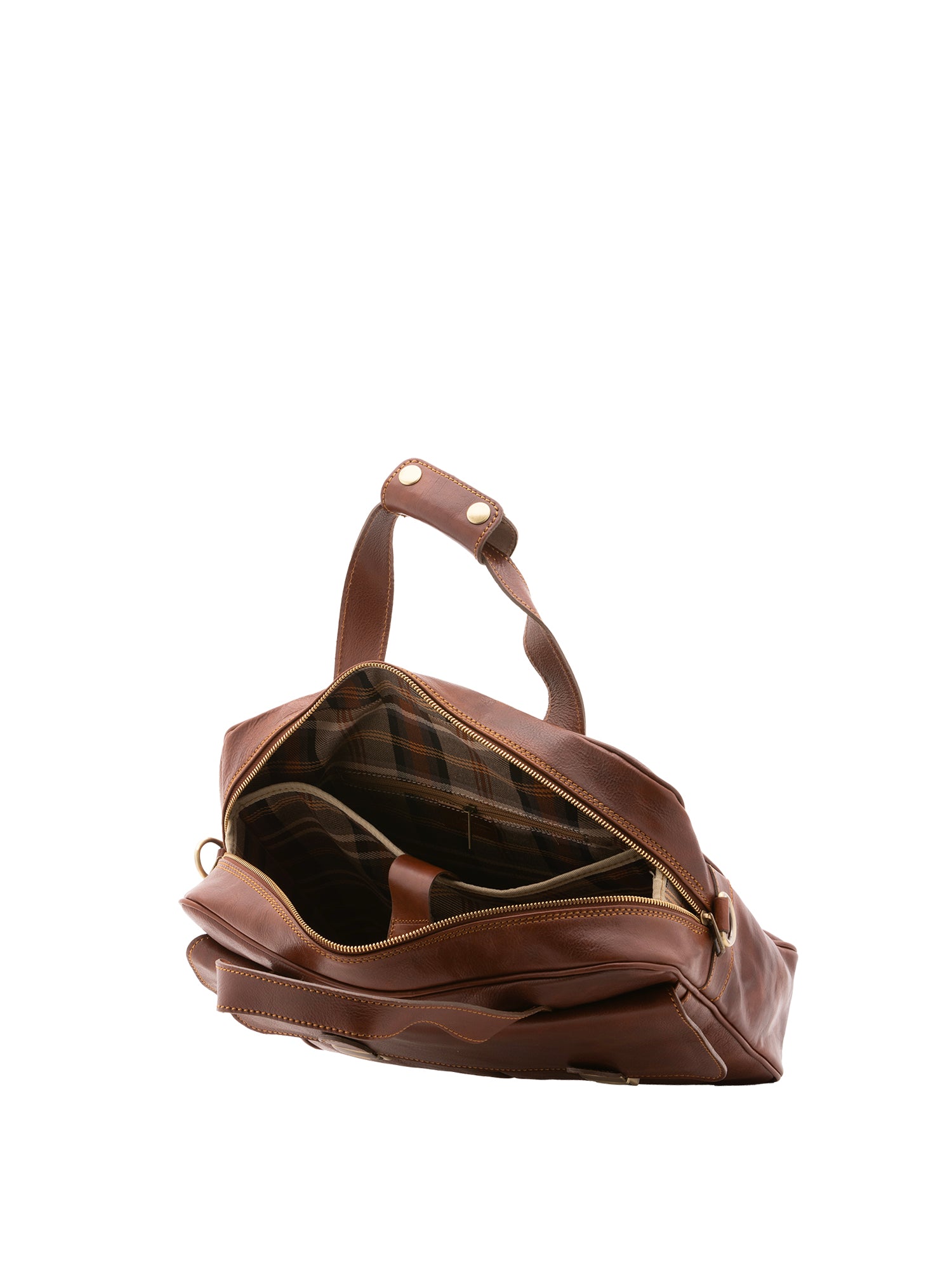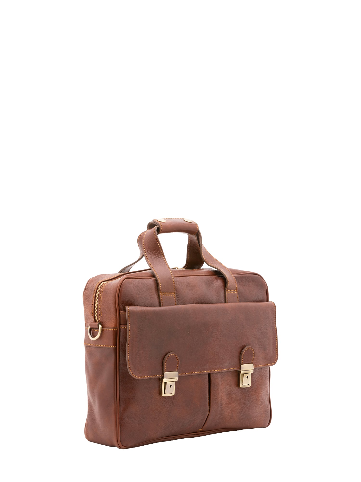 Unisex-Handtasche. Reißverschluss. Eine Innentasche mit Reißverschluss. Zwei Außentaschen vorne und eine hinten sind mit Druckknöpfen versehen. Der Schultergurt ist verstellbar und abnehmbar und besteht aus Leder. Der Tragegriff ist ebenfalls aus Leder. Die Tasche verfügt über drei Innenfächer. Das Außenmaterial besteht aus 100 % echtem Leder. Innen ist sie mit Baumwolle gefüttert. Maße: 38 x 36 x 10 cm. Hergestellt in Italien.