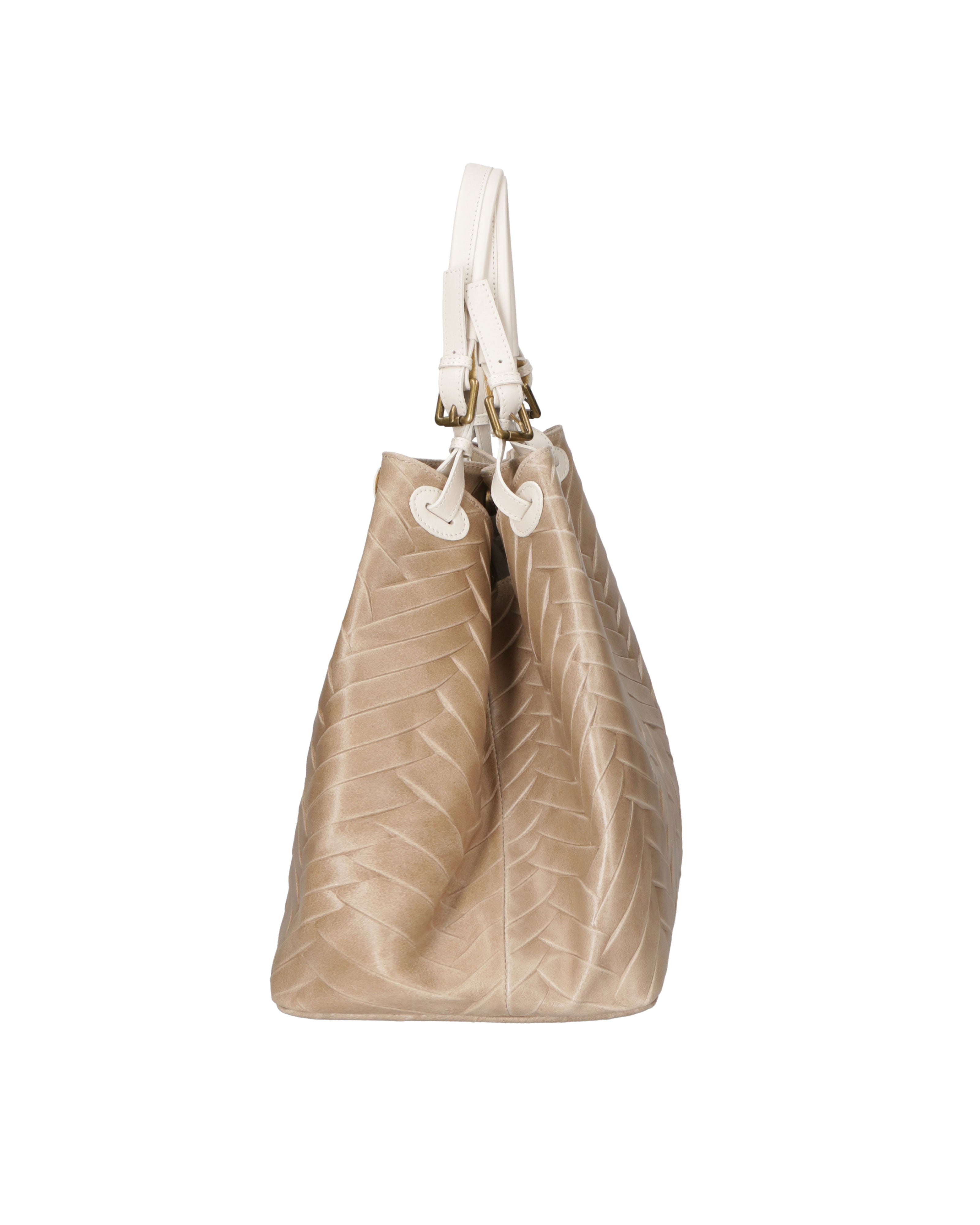Zeitlose Eleganz und italienische Handwerkskunst vereinen sich in dieser raffinierten Umhängetasche. Gefertigt aus hochwertigem Wildleder verkörpert diese Tasche dezenten Luxus und unübertroffene Qualität. Die gewebte Textur verleiht einen Hauch von Originalität und Raffinesse und macht jede Tasche zu einem Unikat. Das Innenfutter aus einem weichen Baumwoll-Synthetik-Mix bietet Komfort und Langlebigkeit. Der Magnetverschluss sorgt für Funktionalität und Sicherheit, während der Henkel mit der idealen Länge (62 cm) ein bequemes Tragen über der Schulter ermöglicht. Diese Tasche ist ein vielseitiges Accessoire, perfekt für lässige oder elegante Outfits. Ihr zeitloses Design macht sie zu einer nachhaltigen Investition in Ihre Garderobe. Diese Tasche wurde vollständig in Italien von erfahrenen Handwerkern gefertigt und steht für Qualität, Stil und Liebe zum Detail. Um ihre Schönheit dauerhaft zu bewahren, bedarf sie sorgfältiger Pflege mit speziellen Lederprodukten. Ein Juwel italienischer Handwerkskunst, entworfen für die Frau, die mit Klasse hervorsticht.