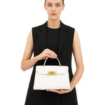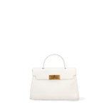 Die klassische, klare Silhouette wird durch einen goldfarbenen Drehverschluss betont, ein Detail, das einen Hauch zeitloser Eleganz verleiht. Die ungefütterte Innenseite unterstreicht die natürliche Schönheit des Leders und bietet ein einzigartiges Tasterlebnis.
