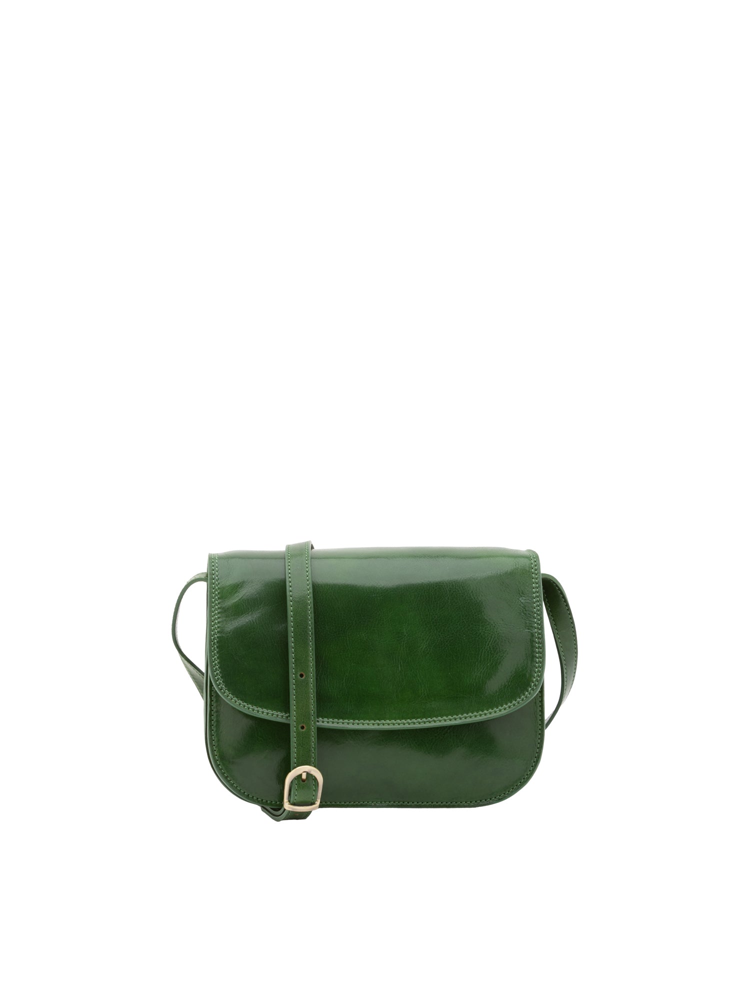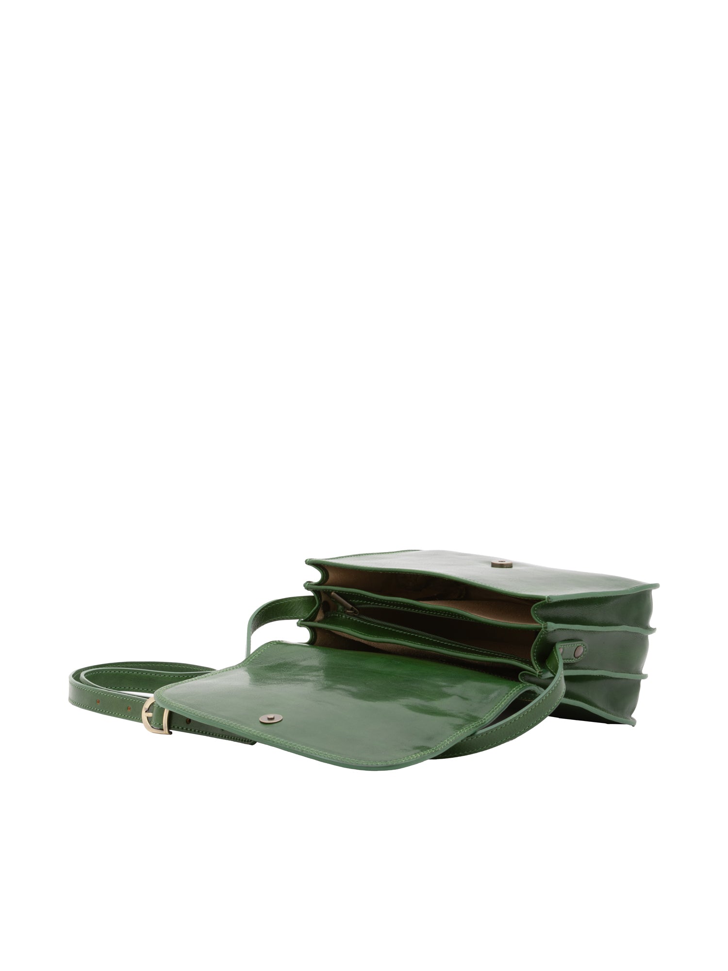 Damen-Umhängetasche. Magnetverschluss. Innen befindet sich ein Reißverschlussfach. Auf der Rückseite befindet sich ein Außenfach mit Reißverschluss. Der verstellbare Schultergurt aus Leder ist grifflos. Innen befinden sich drei Fächer. Die Außenseite besteht aus echtem Rindsleder. Innen ist sie mit Baumwolle gefüttert. Maße: 27 x 20 x 12 cm. Hergestellt in Italien.