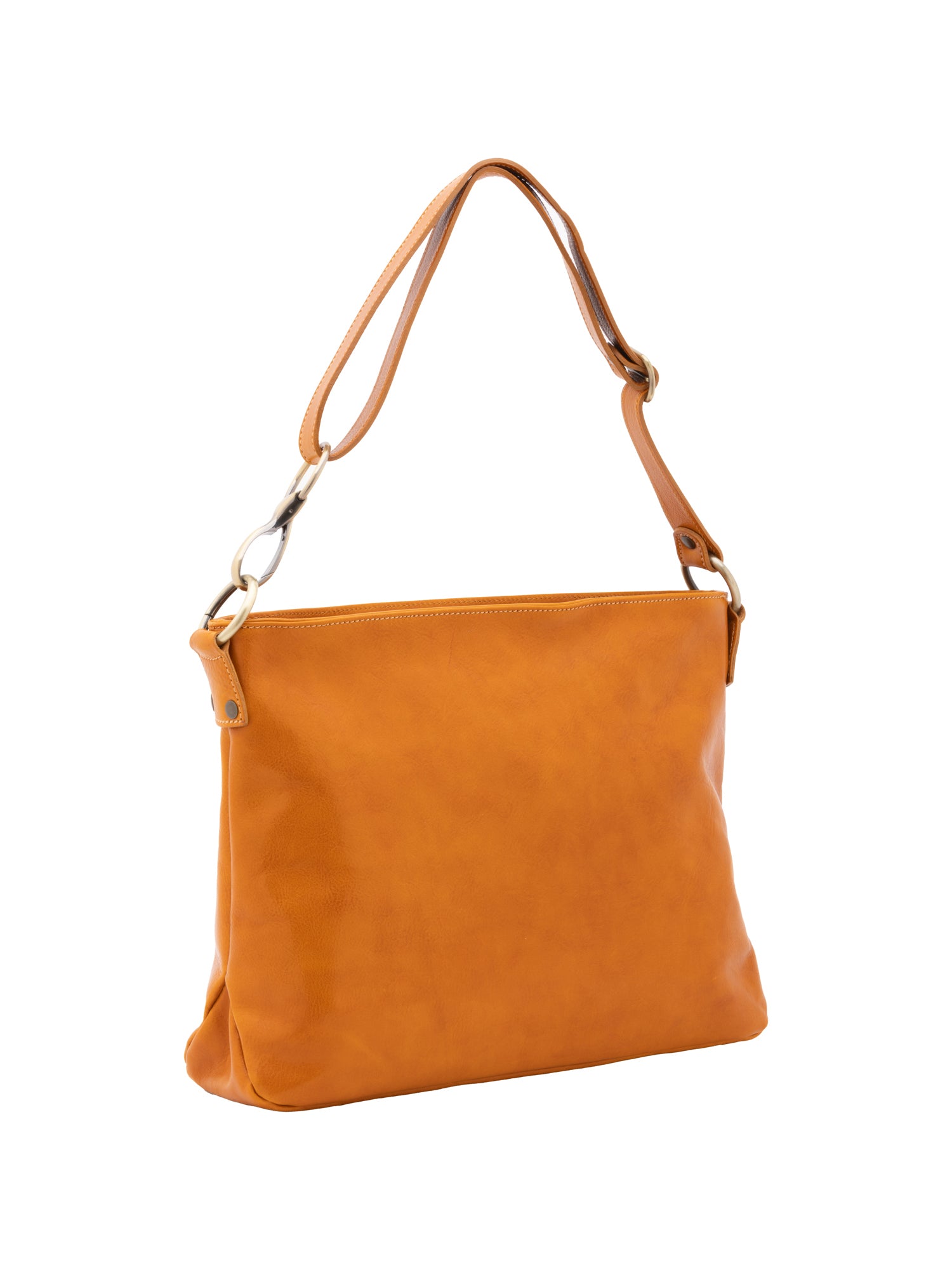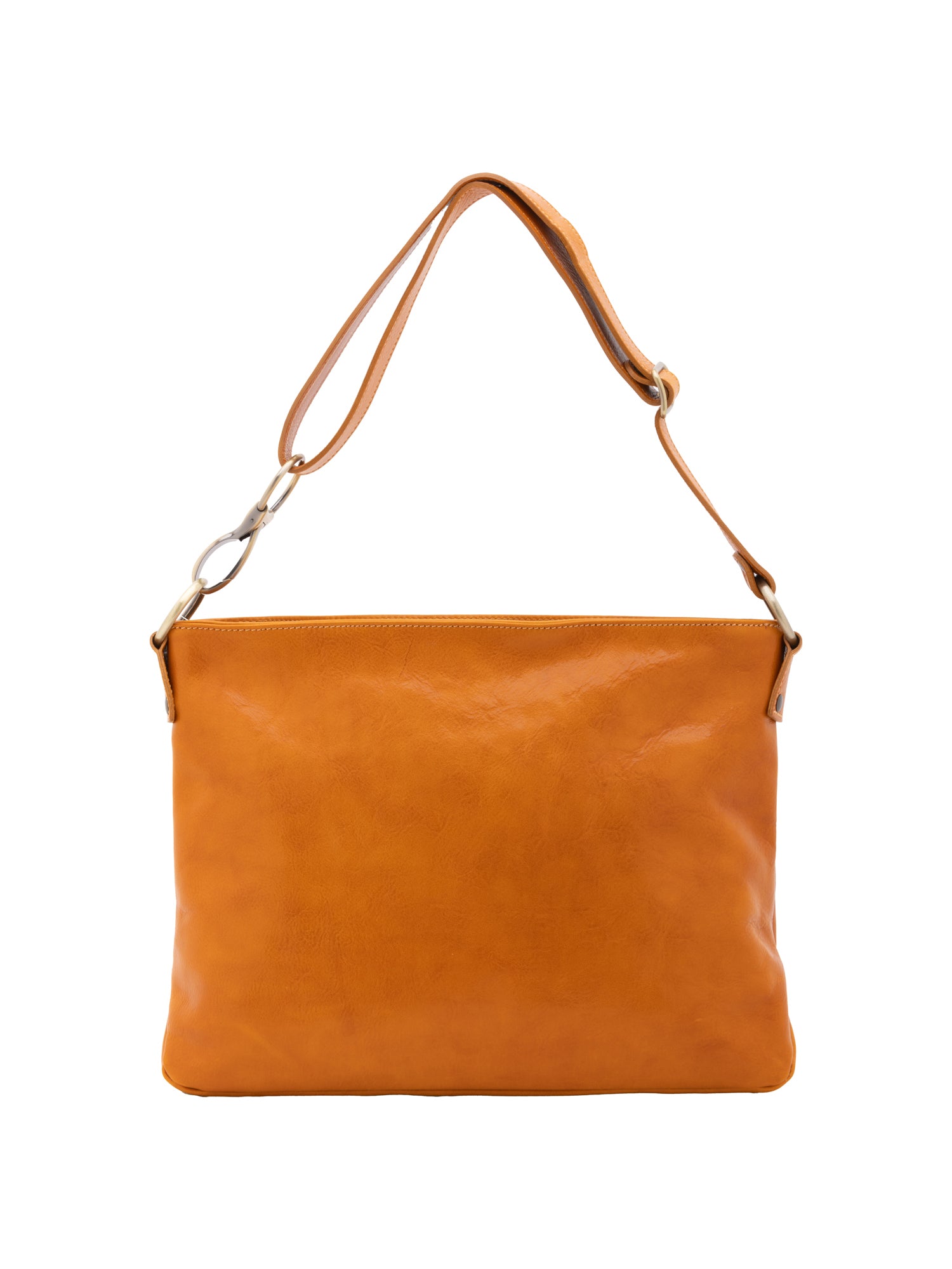 Damen-Umhängetasche. Reißverschluss. Zwei Innentaschen mit Reißverschluss. Keine Außentaschen. Verstellbarer Schultergurt aus Leder. Kein Tragegriff. Zwei Innenfächer. Außenmaterial: echtes Rindsleder. Innenfutter: Baumwolle. Maße: 38 x 29 x 11 cm. Hergestellt in Italien.