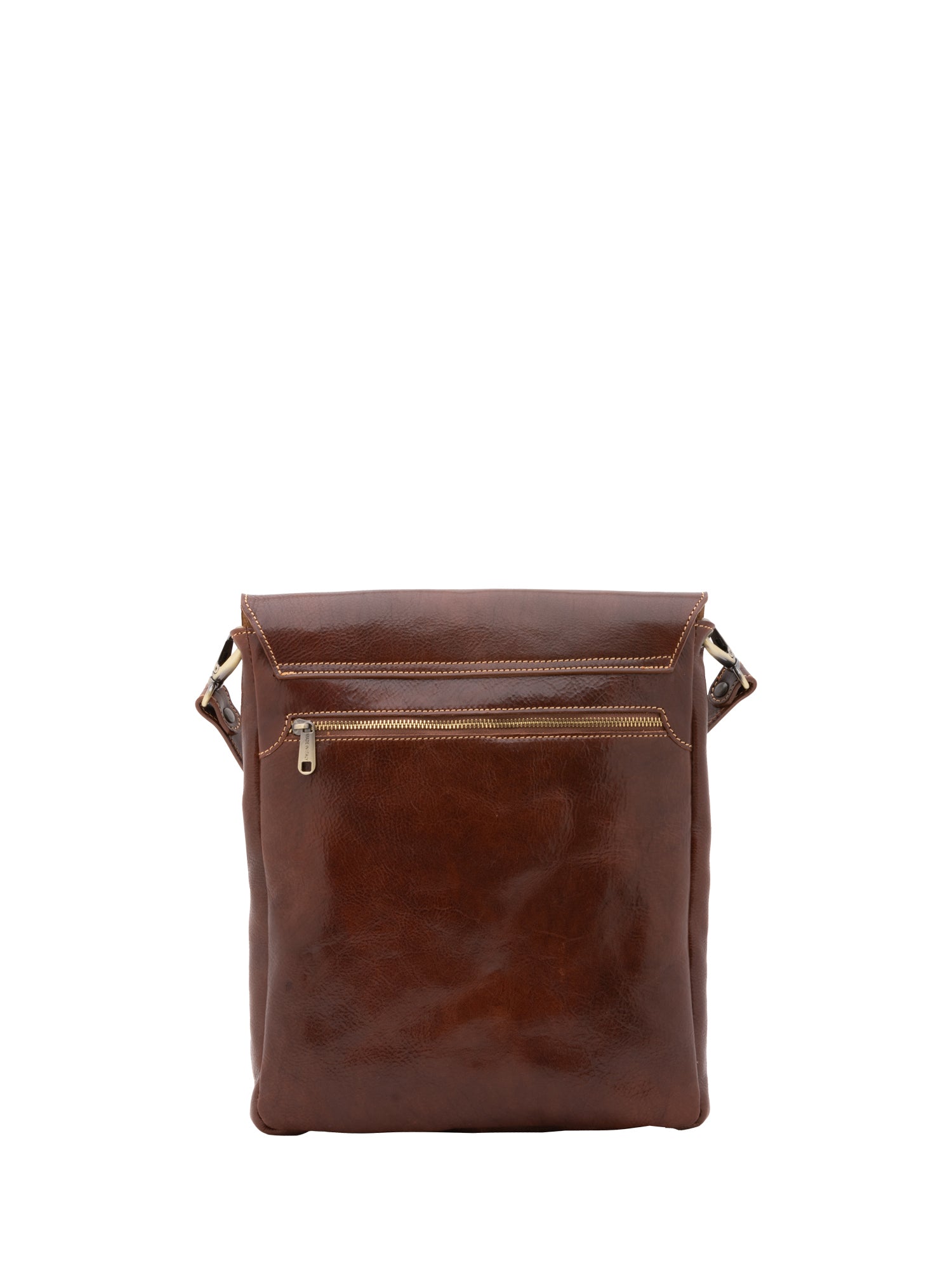 Herren-Umhängetasche. Mit Magnetverschluss. Innen befindet sich ein Reißverschlussfach. Auf der Vorderseite befinden sich ein offenes Außenfach und auf der Rückseite ein Reißverschlussfach. Der verstellbare Schultergurt ist aus Leder gefertigt. Es ist kein Tragegriff vorhanden. Innen befindet sich ein Fach. Die Außenseite besteht aus echtem Rindsleder. Innen ist sie mit Baumwolle gefüttert. Maße: 31 x 35 x 4 cm. Hergestellt in Italien.