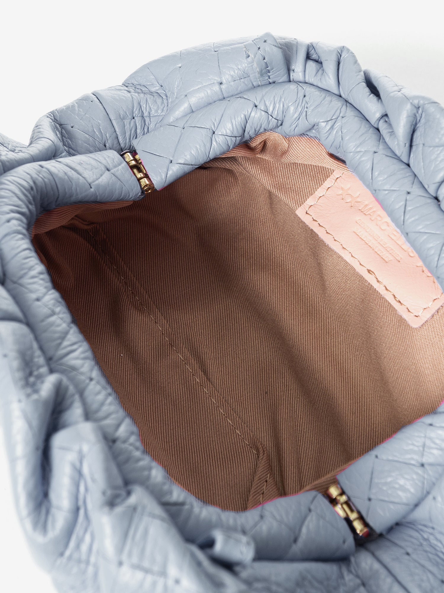 Realizzata interamente in vera pelle di alta qualità, sia all'esterno che all'interno, questa borsa incarna lusso e durata. La texture delicatamente trapuntata conferisce un tocco di sofisticatezza discreta, mentre la chiusura a scatto garantisce praticità e sicurezza.