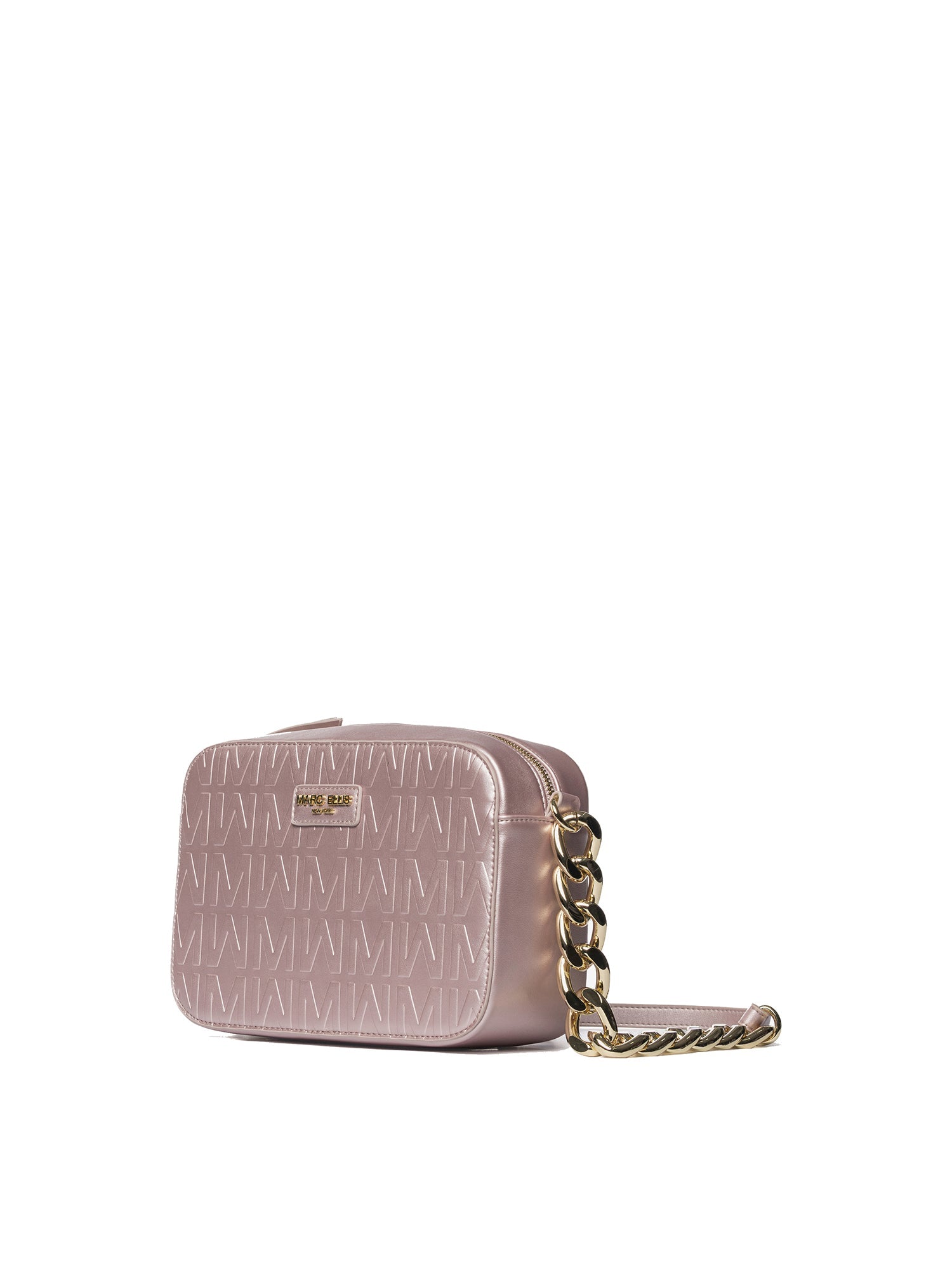 La chiusura con zip assicura la sicurezza dei tuoi effetti personali. Il dettaglio distintivo è la catena, che aggiunge un tocco di audacia e raffinatezza, trasformando questa borsa in un vero e proprio statement di stile.