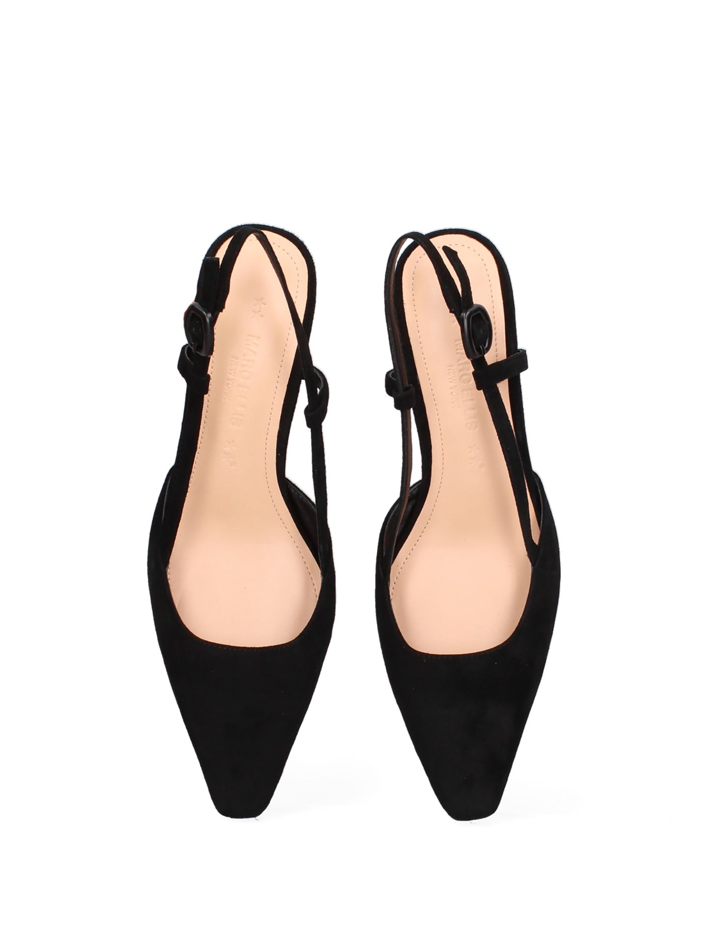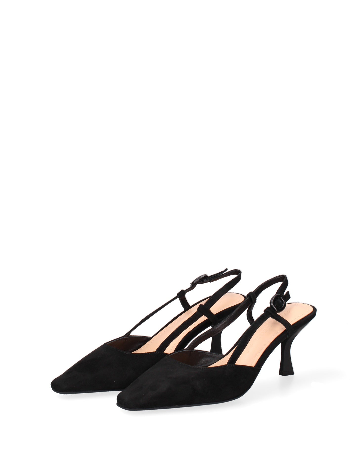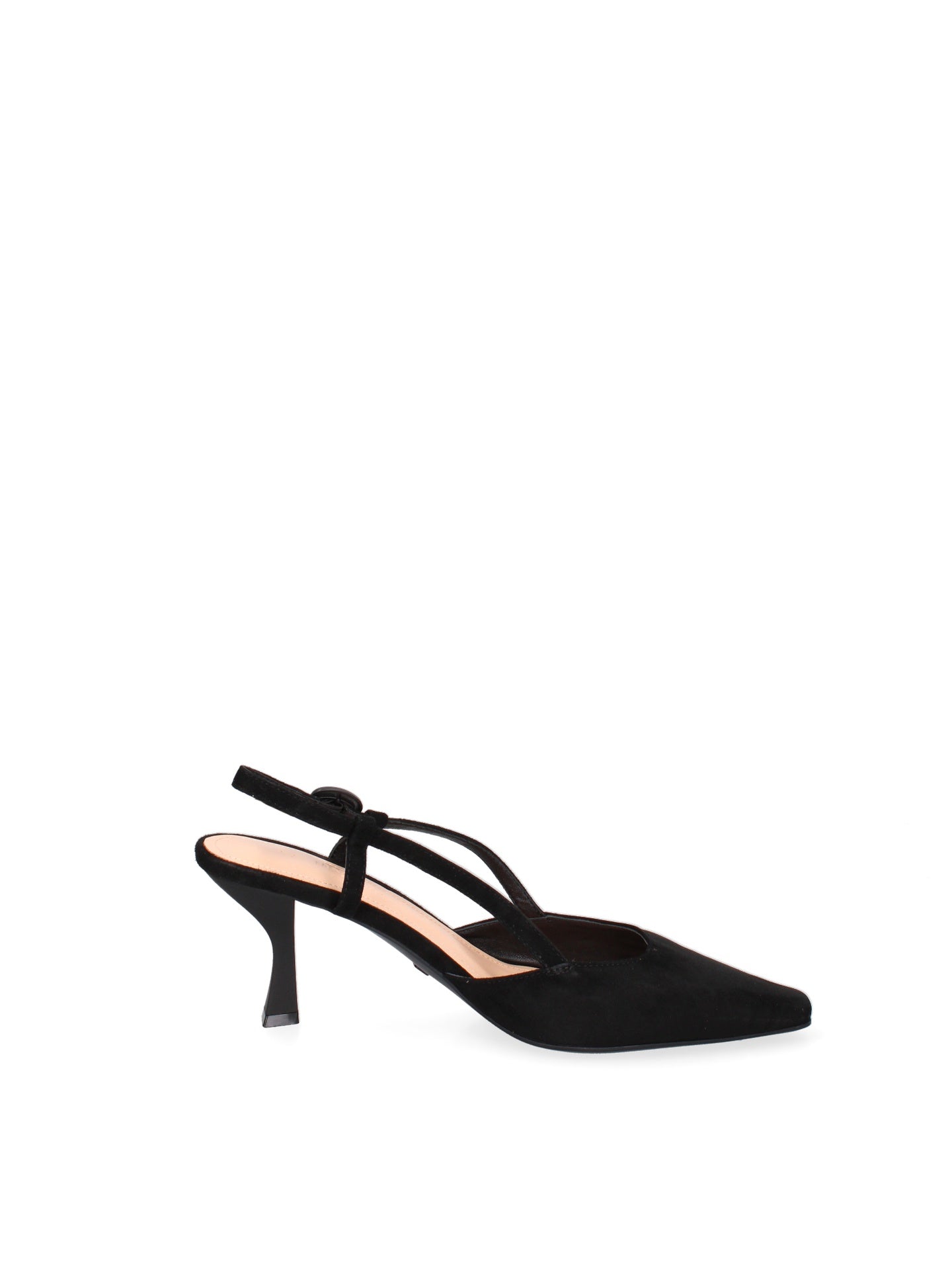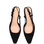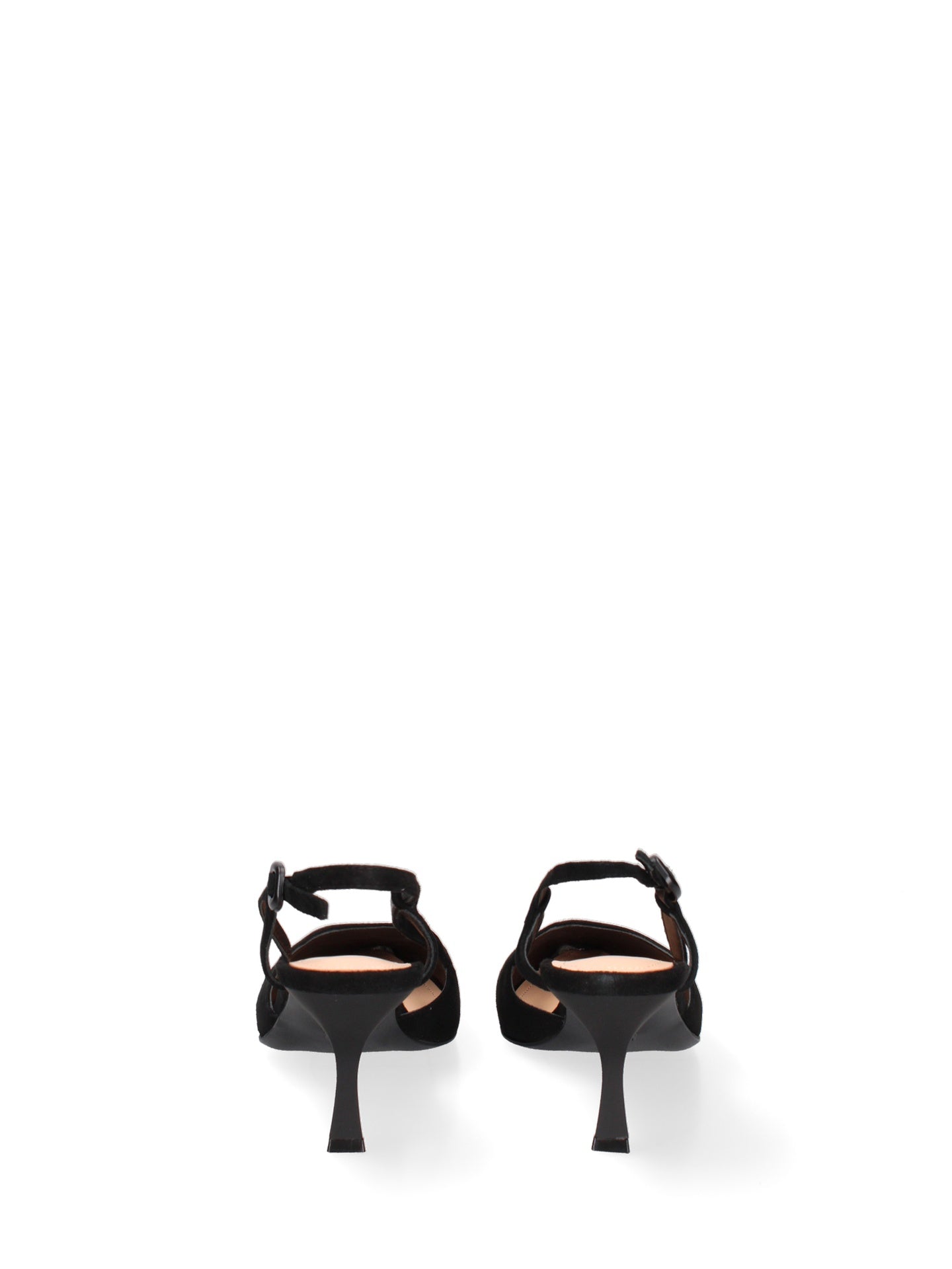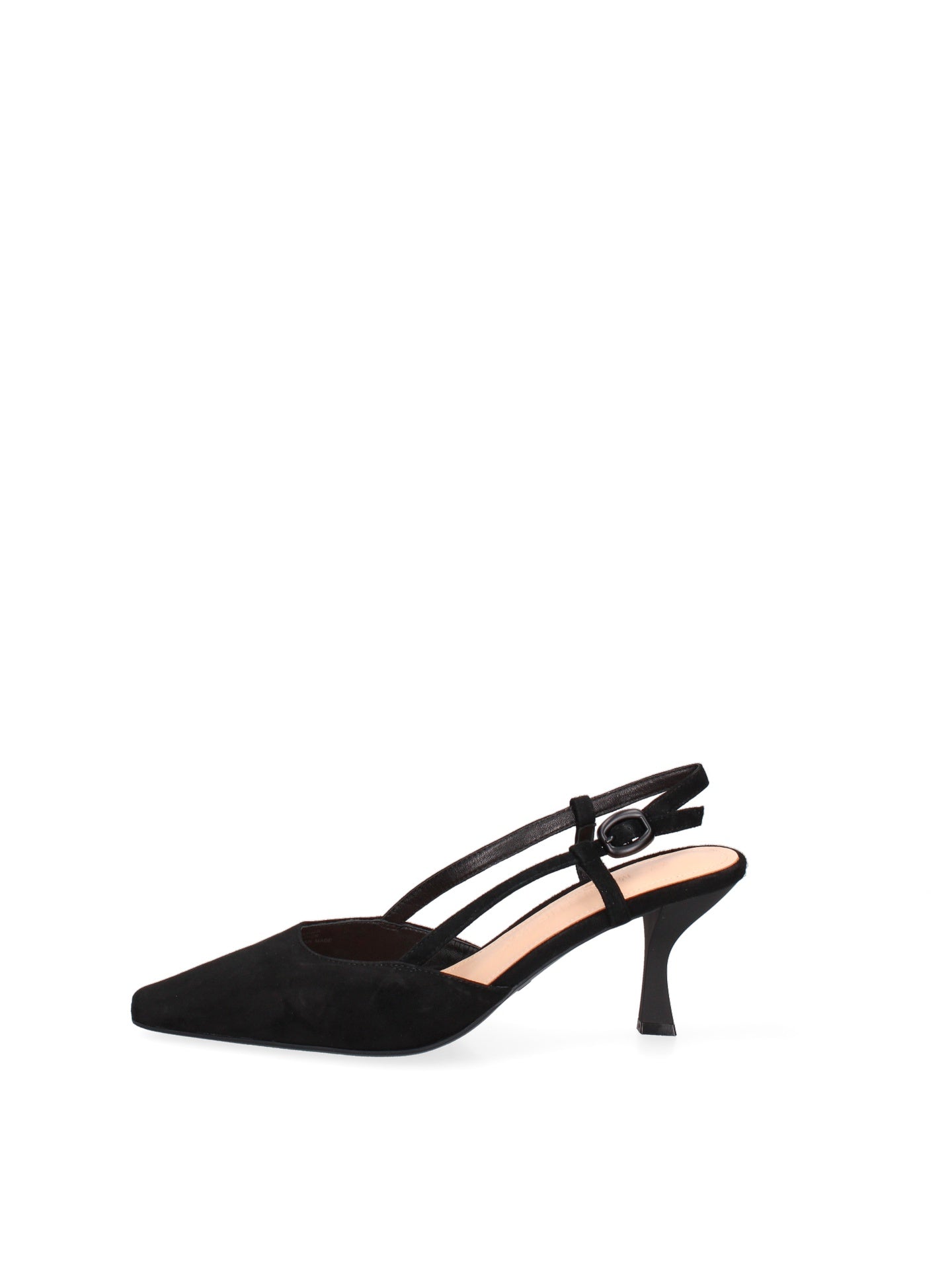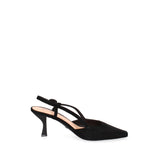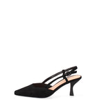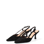 Il design classico, con la punta affusolata, è reso unico dalla delicata silhouette del tacco, che slancia la figura con grazia. L'assenza di chiusura e la linea pulita esaltano la bellezza naturale del piede, offrendo comfort e libertà di movimento.
