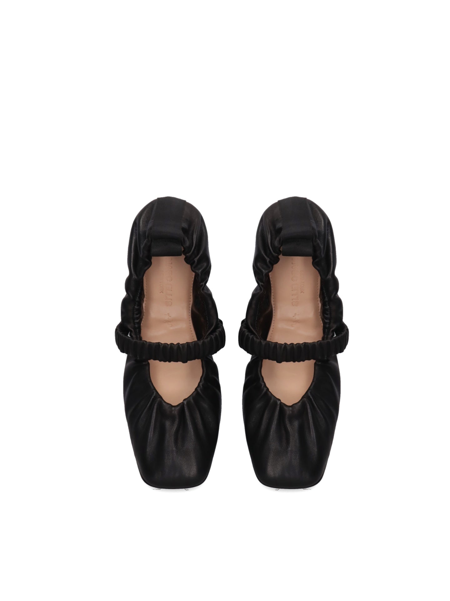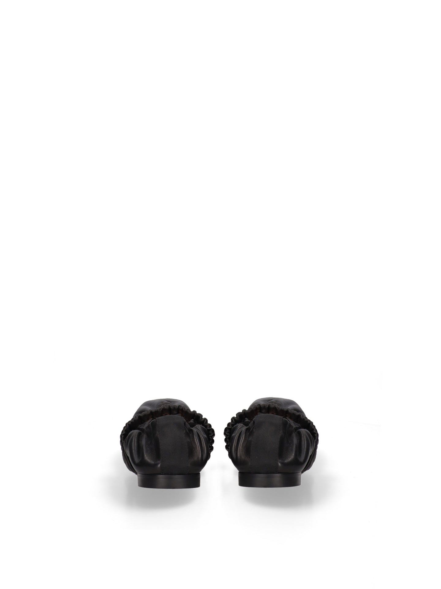 Il design minimalista, arricchito da una delicata lavorazione arricciata sulla tomaia, conferisce un tocco di sofisticata originalità. La linea pulita e la forma affusolata slanciano la silhouette, rendendole perfette per completare outfit casual e ricercati.