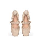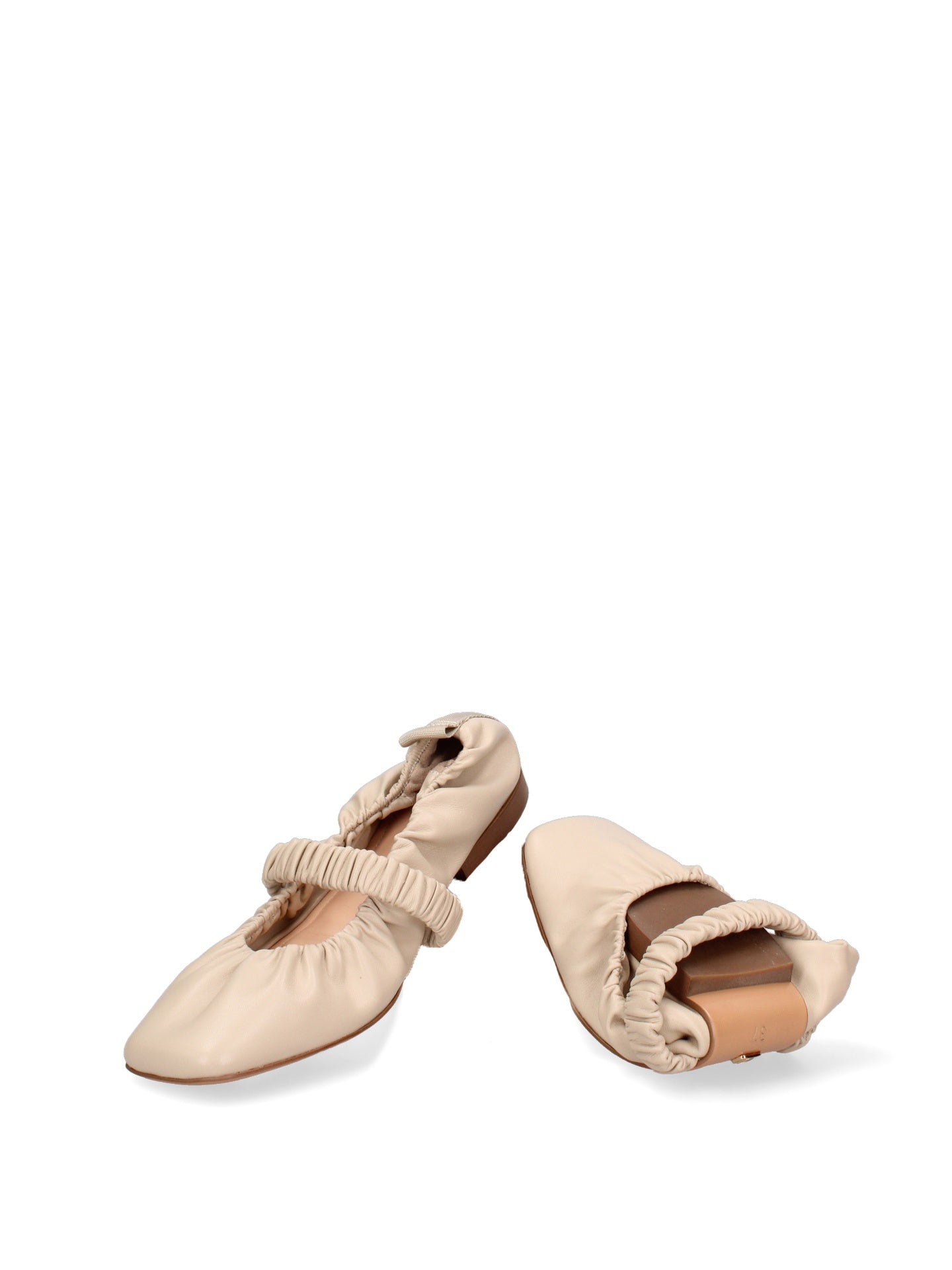 Il design minimalista, arricchito da una delicata lavorazione arricciata sulla tomaia, conferisce un tocco di sofisticata originalità. La linea pulita e la forma affusolata slanciano la silhouette, rendendole perfette per completare outfit casual e ricercati.