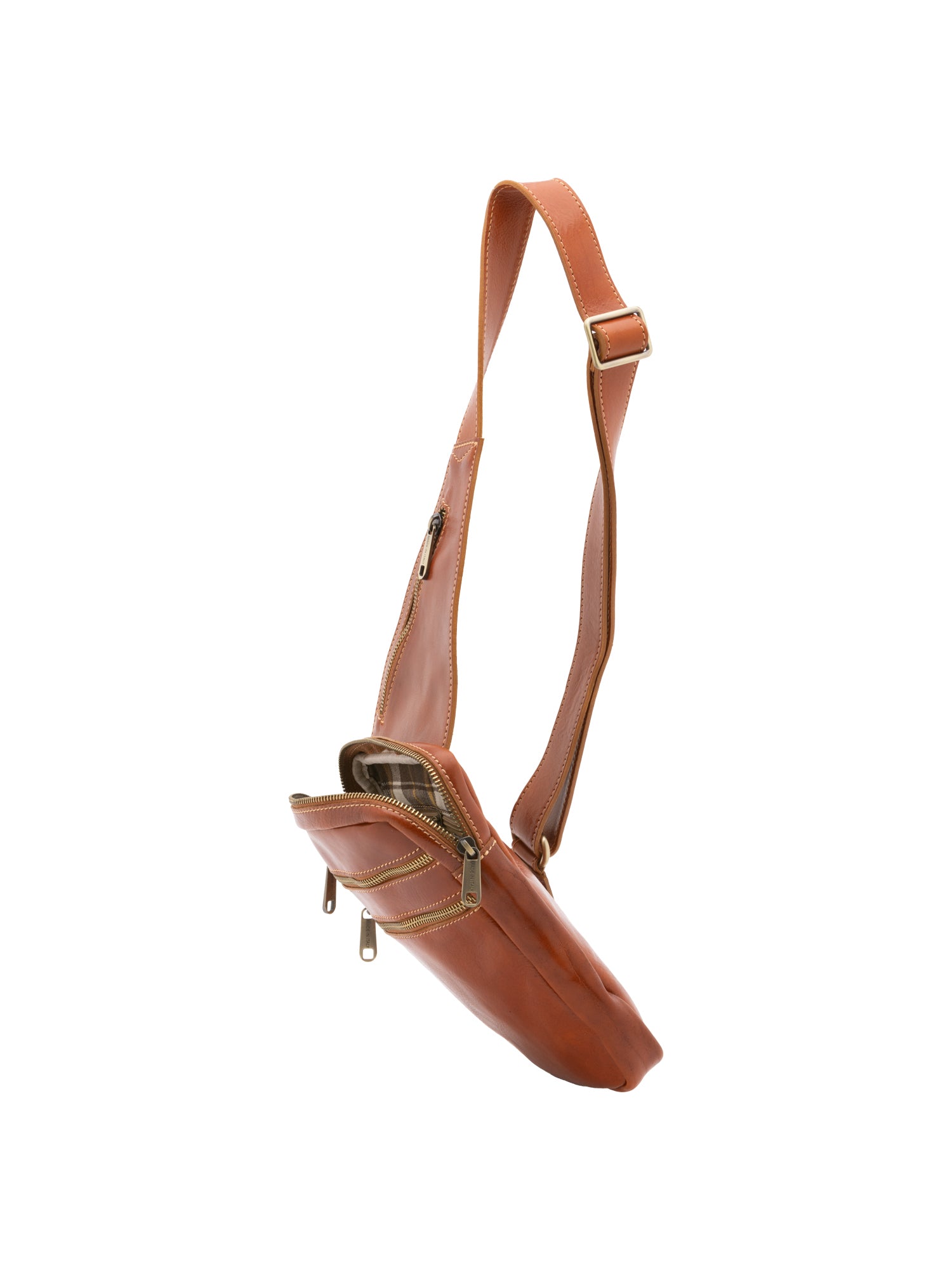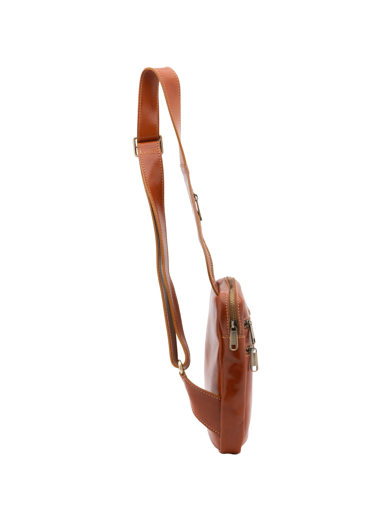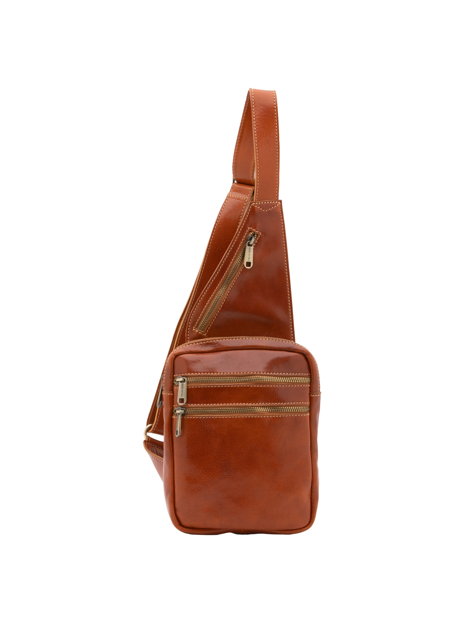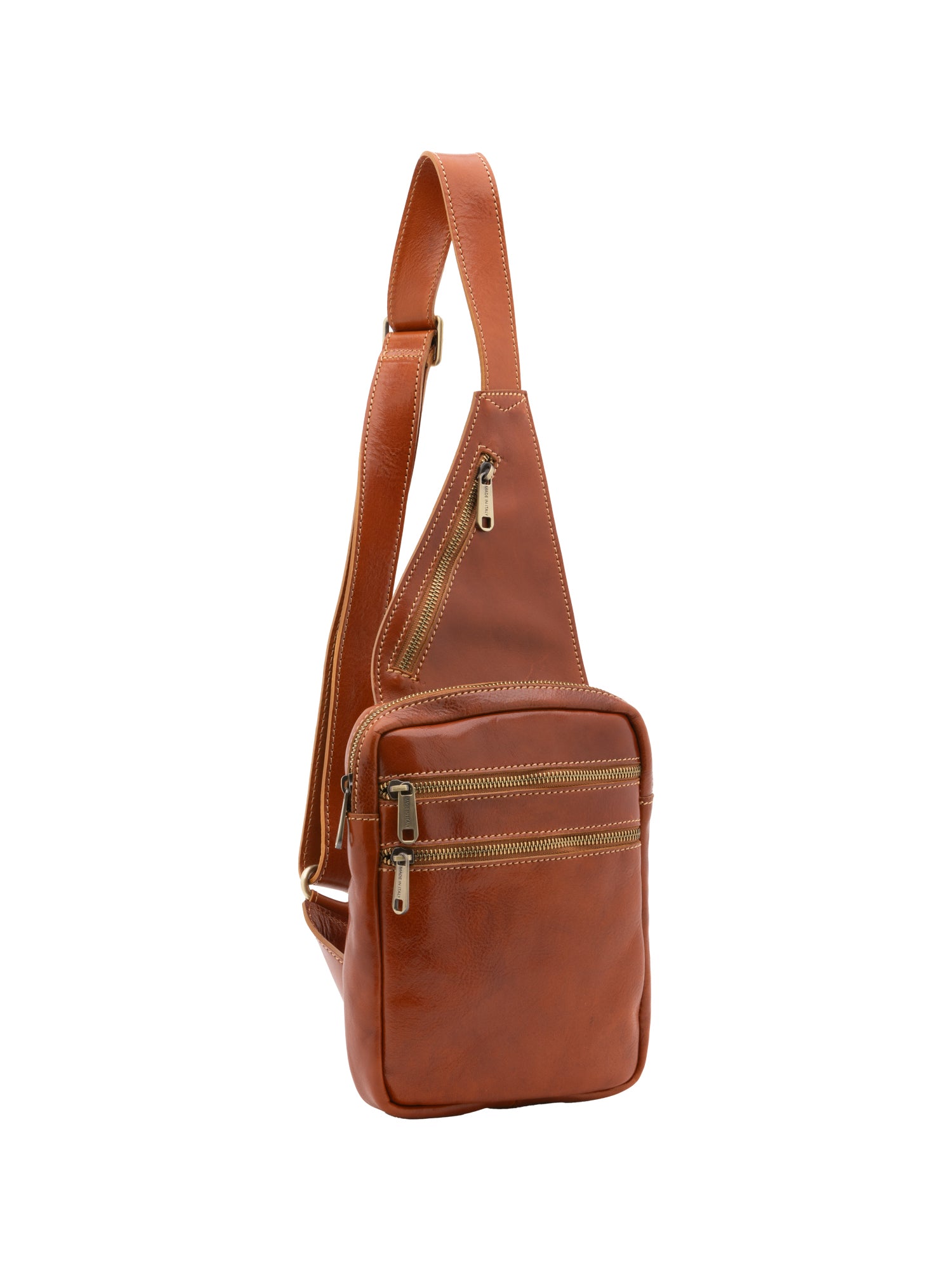 Herren-Umhängetasche aus echtem Leder Made in Italy 5505-Cognac