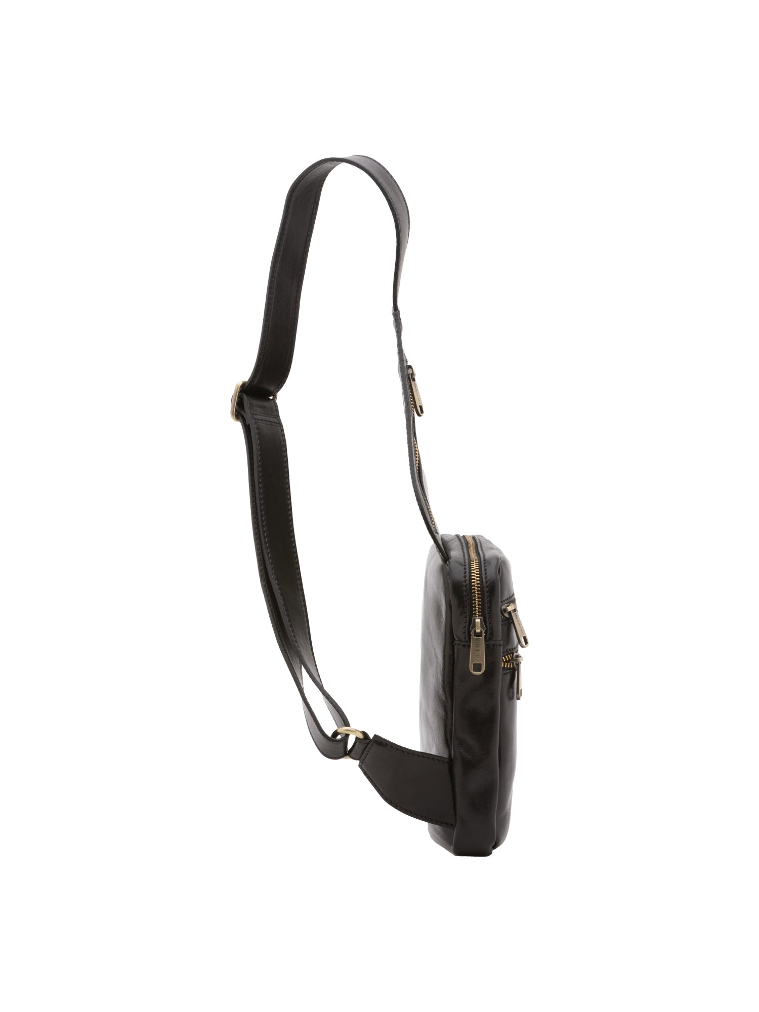 Herren-Umhängetasche. Reißverschluss. Ein Innenfach mit Reißverschluss. Zwei Außenfächer mit Reißverschluss. Verstellbarer Schultergurt aus Leder. Kein Tragegriff. Ein Innenfach. Außenmaterial: echtes Rindsleder. Innenfutter: Baumwolle. Maße: 17 x 23 x 4 cm. Hergestellt in Italien.