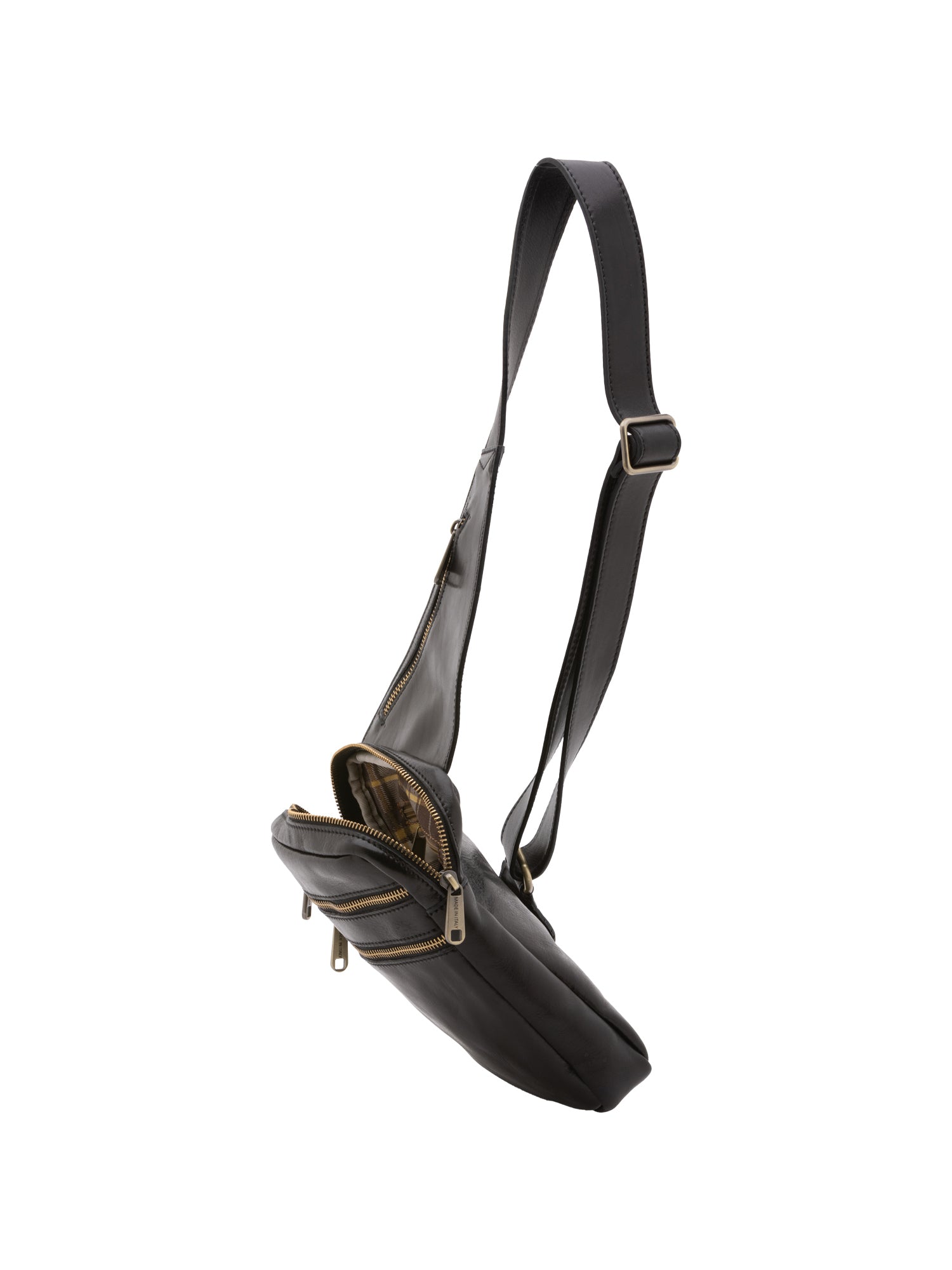 Herren-Umhängetasche aus echtem Leder, hergestellt in Italien, 5505, Schwarz
