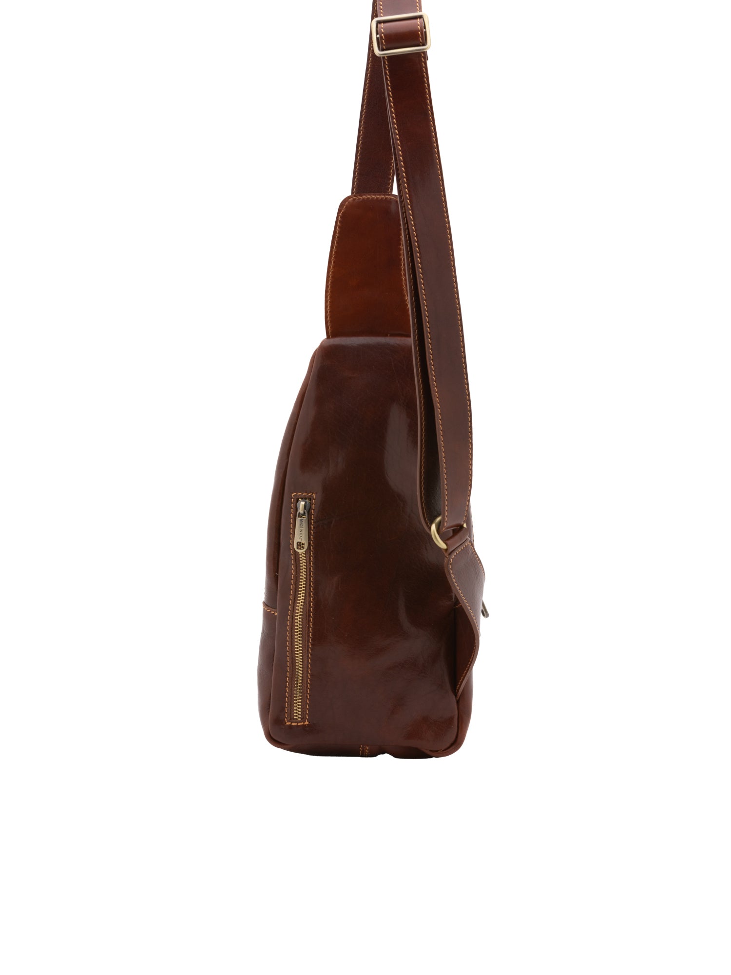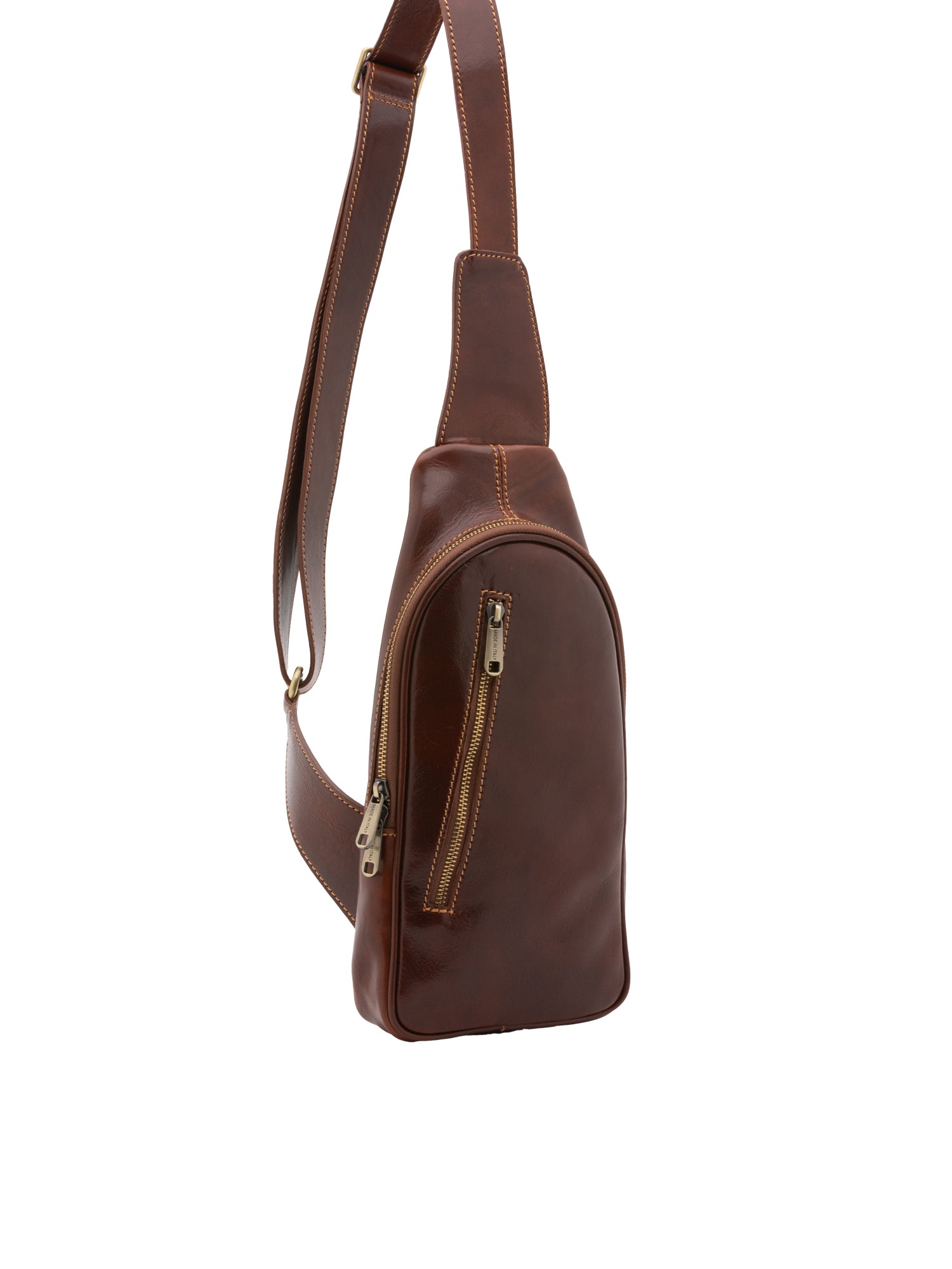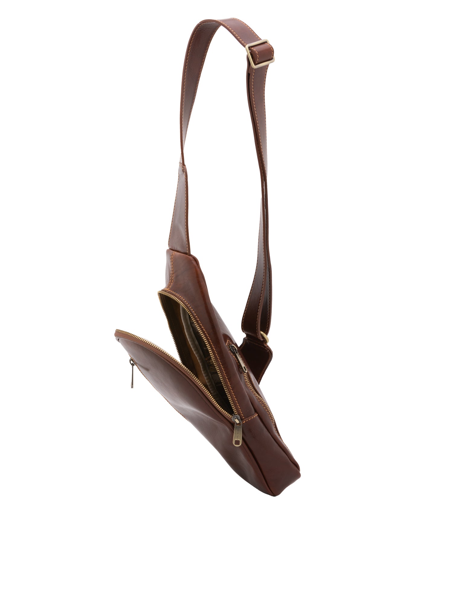 Herren-Umhängetasche aus echtem Leder, Made in Italy 5507-Braun