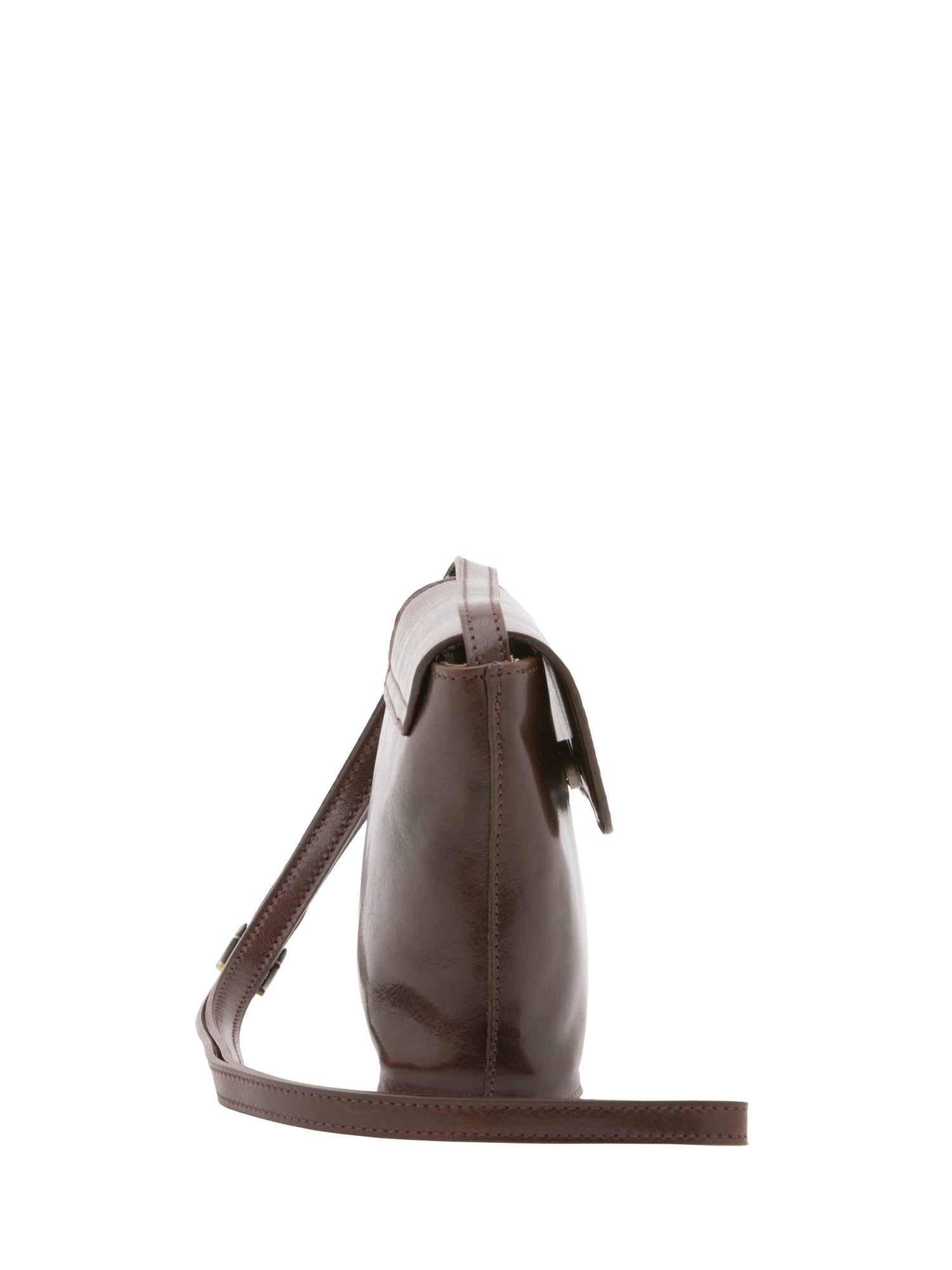 Herren-Umhängetasche. Magnetverschluss. Eine Innentasche mit Reißverschluss. Es gibt keine Außentaschen. Der Schultergurt ist verstellbar und aus Leder. Es gibt keinen Tragegriff. Es gibt ein Innenfach. Das Außenmaterial ist echtes Rindsleder. Innen ist es mit Baumwolle gefüttert. Maße: 16 x 17,5 x 7 cm. Hergestellt in Italien.