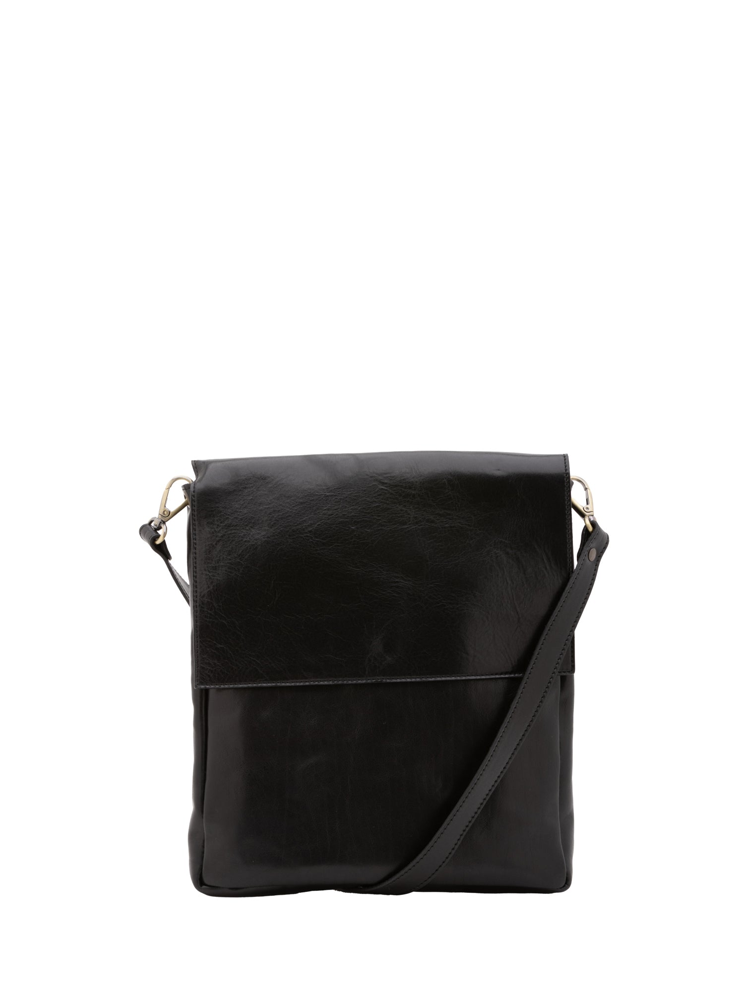 Herren-Umhängetasche. Mit Magnetverschluss. Innen befindet sich ein Reißverschlussfach. Auf der Vorderseite befinden sich ein offenes Außenfach und auf der Rückseite ein Reißverschlussfach. Der verstellbare Schultergurt ist aus Leder gefertigt. Es ist kein Tragegriff vorhanden. Innen befindet sich ein Fach. Die Außenseite besteht aus echtem Rindsleder. Innen ist sie mit Baumwolle gefüttert. Maße: 31 x 35 x 4 cm. Hergestellt in Italien.