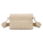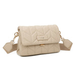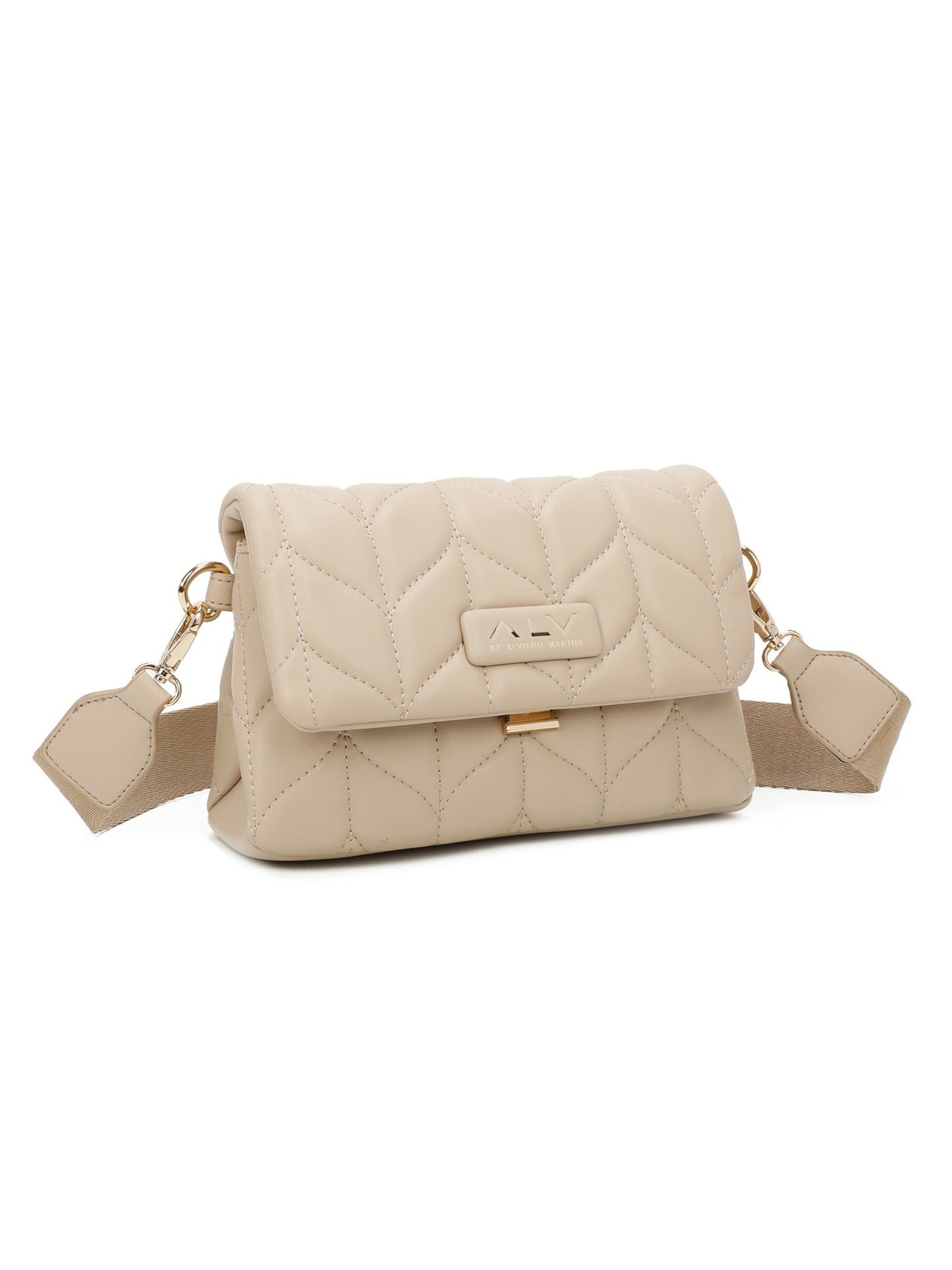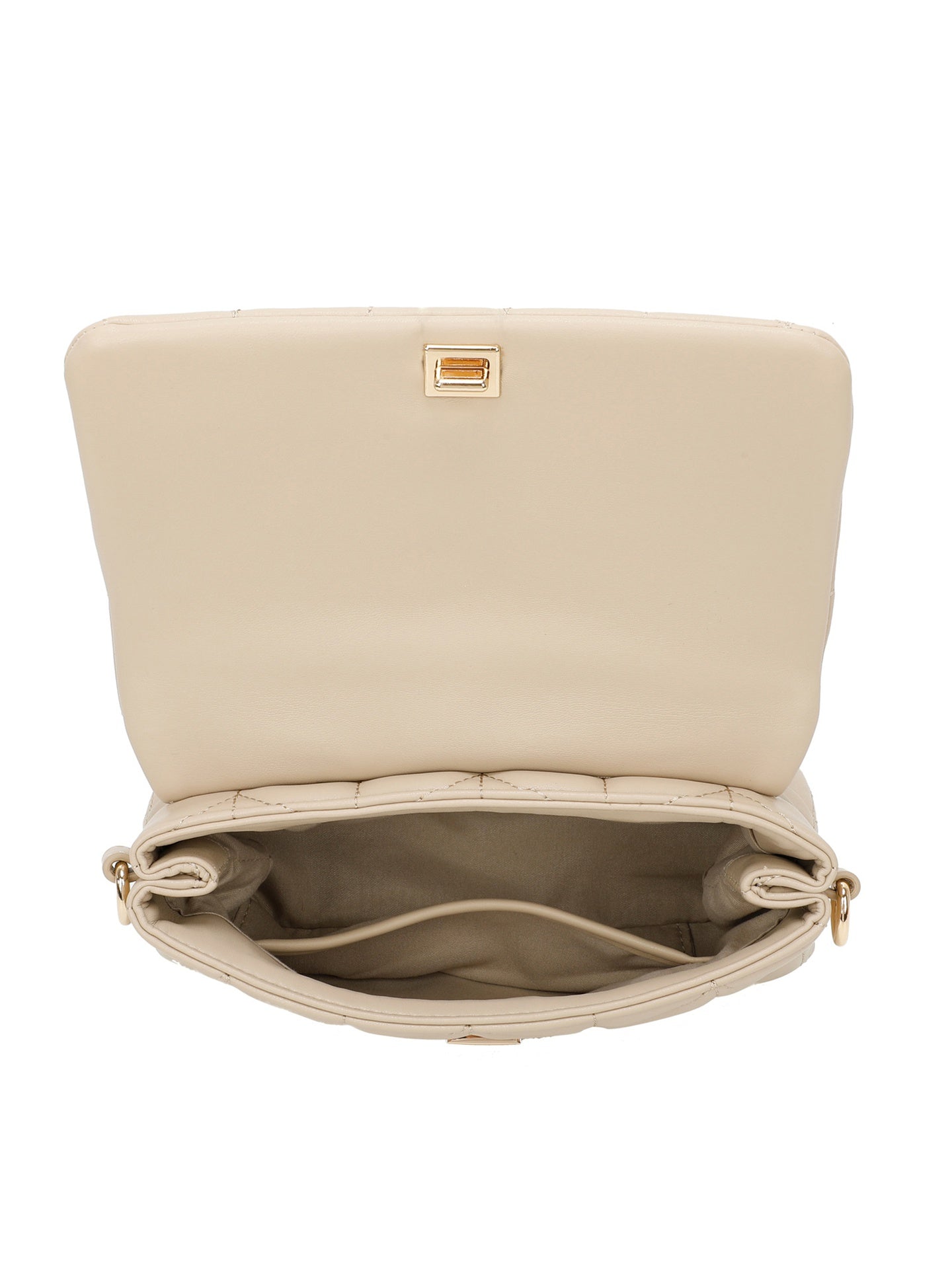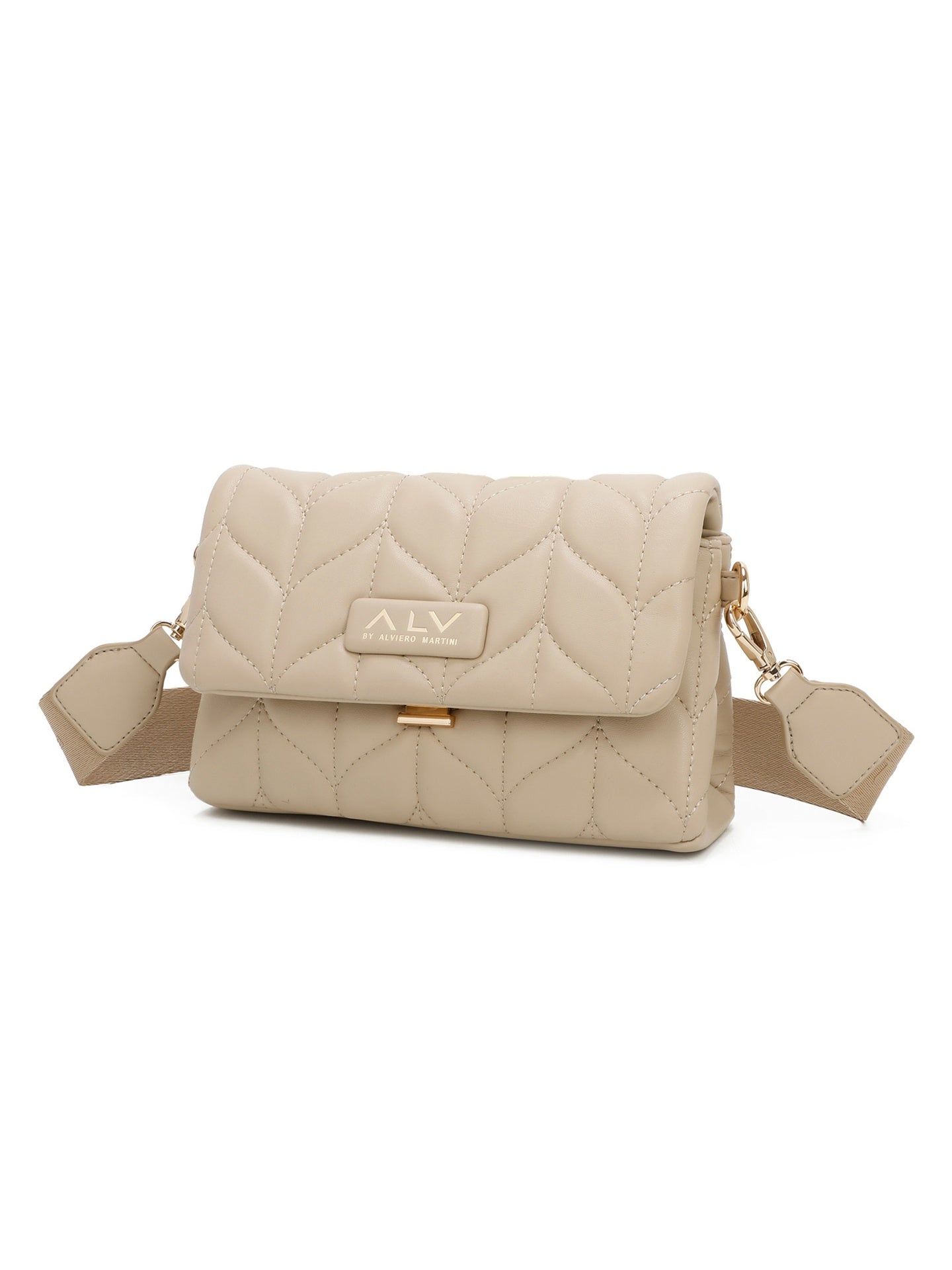 Eleva il tuo look con questa sofisticata borsa a tracolla, un accessorio indispensabile per la donna moderna. Realizzata in pregiato poliuretano al 100%, questa borsa cattura l'attenzione con la sua texture matelassé, un dettaglio di stile che aggiunge un tocco di eleganza senza tempo.